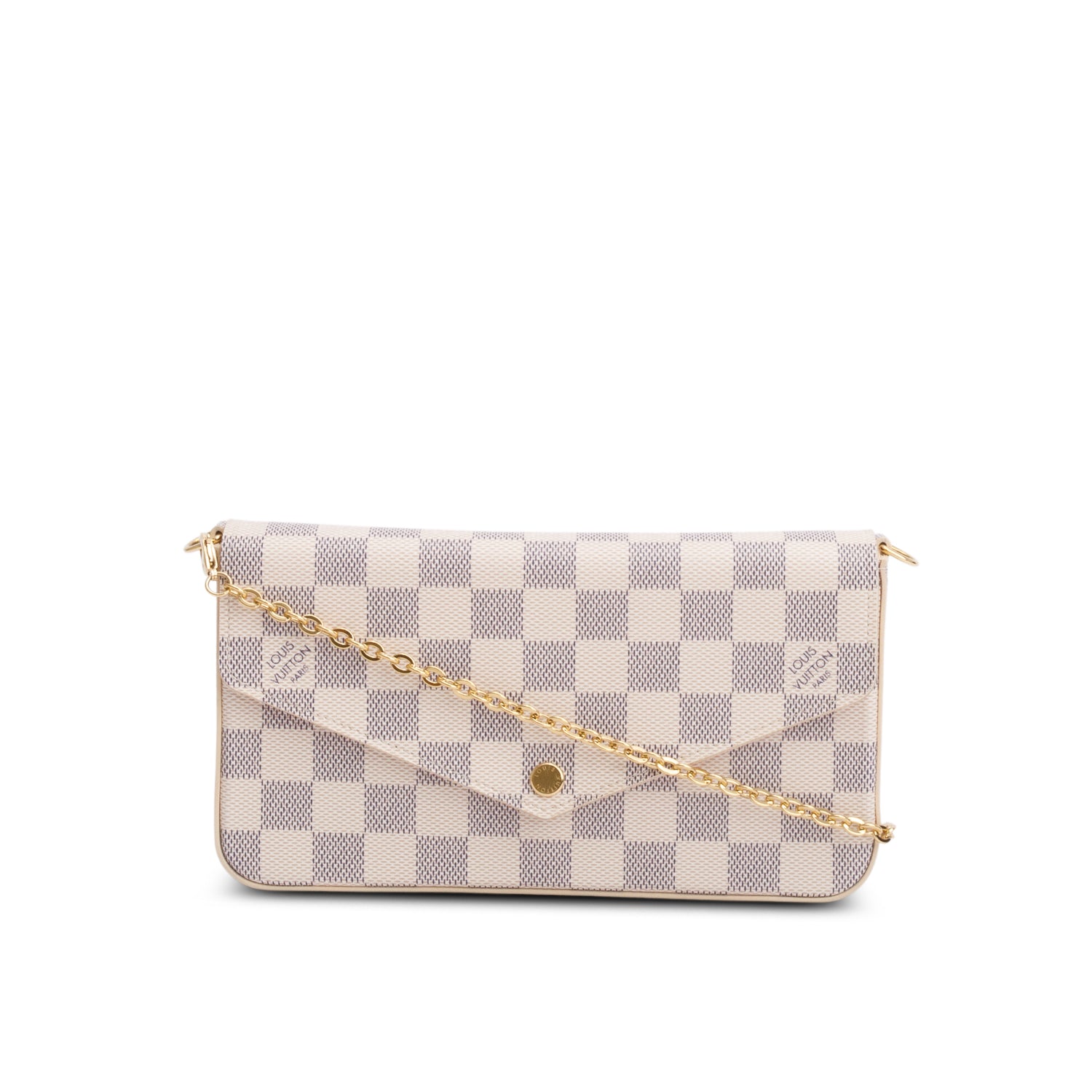 Damier Azur Pochette Felicie Chain Wallet w/ Box & Inserts