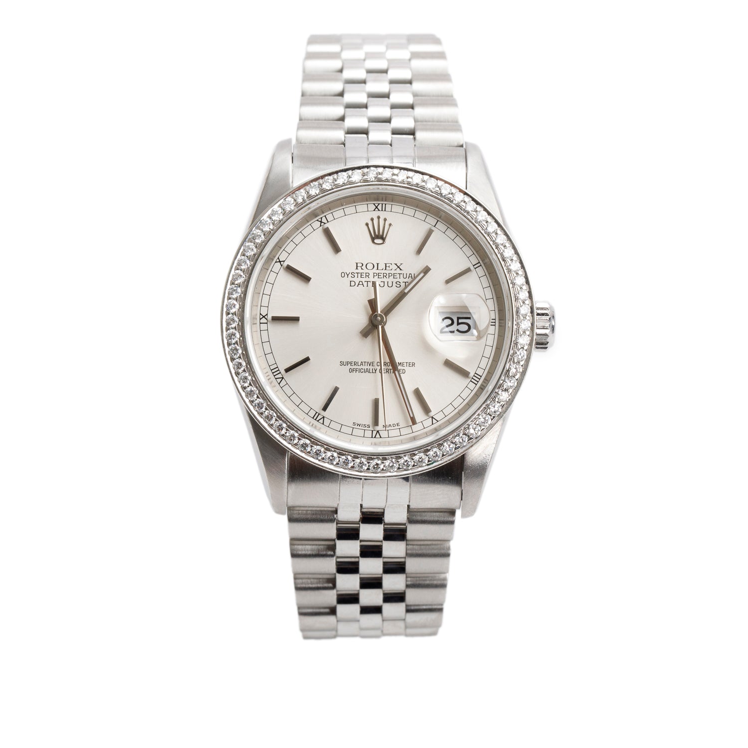 Stainless Steel Aftermarket Diamond Bezel Oyster Perpetual Datejust 36 MM Silver Dial Watch Silver Dial 16234