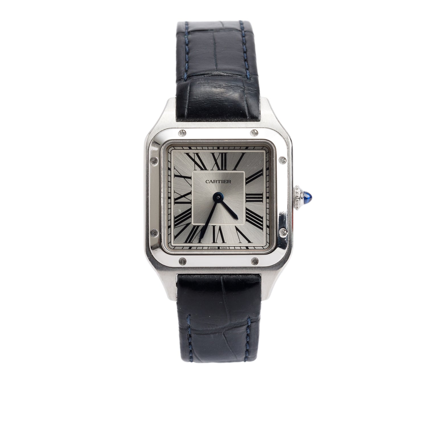 Stainless Steel Santos Dumont Watch, Silver Dial Small Model 4242 w/ Box & Papers
