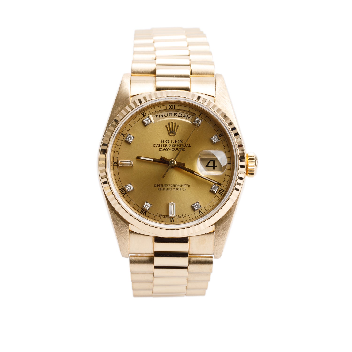 18k Yellow Gold Day Date 36 MM President Watch Champagne Diamond Dial 18238 w/ Box