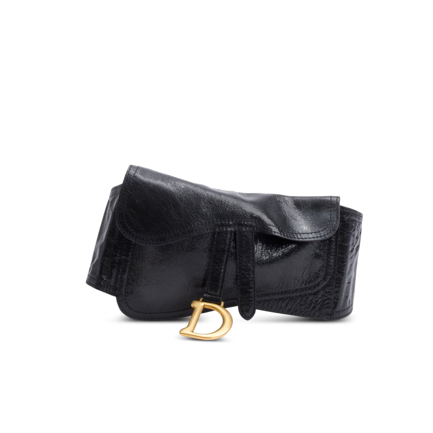 2021 Black Calfskin Leather Strass CC Buckle Belt 70 28