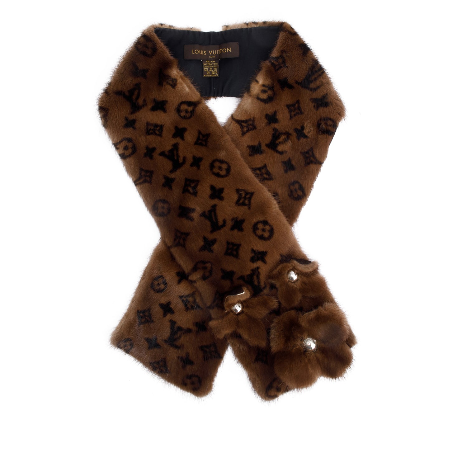 Brown Monogram Mink Fur Fleur Stole Scarf w/ Pouch