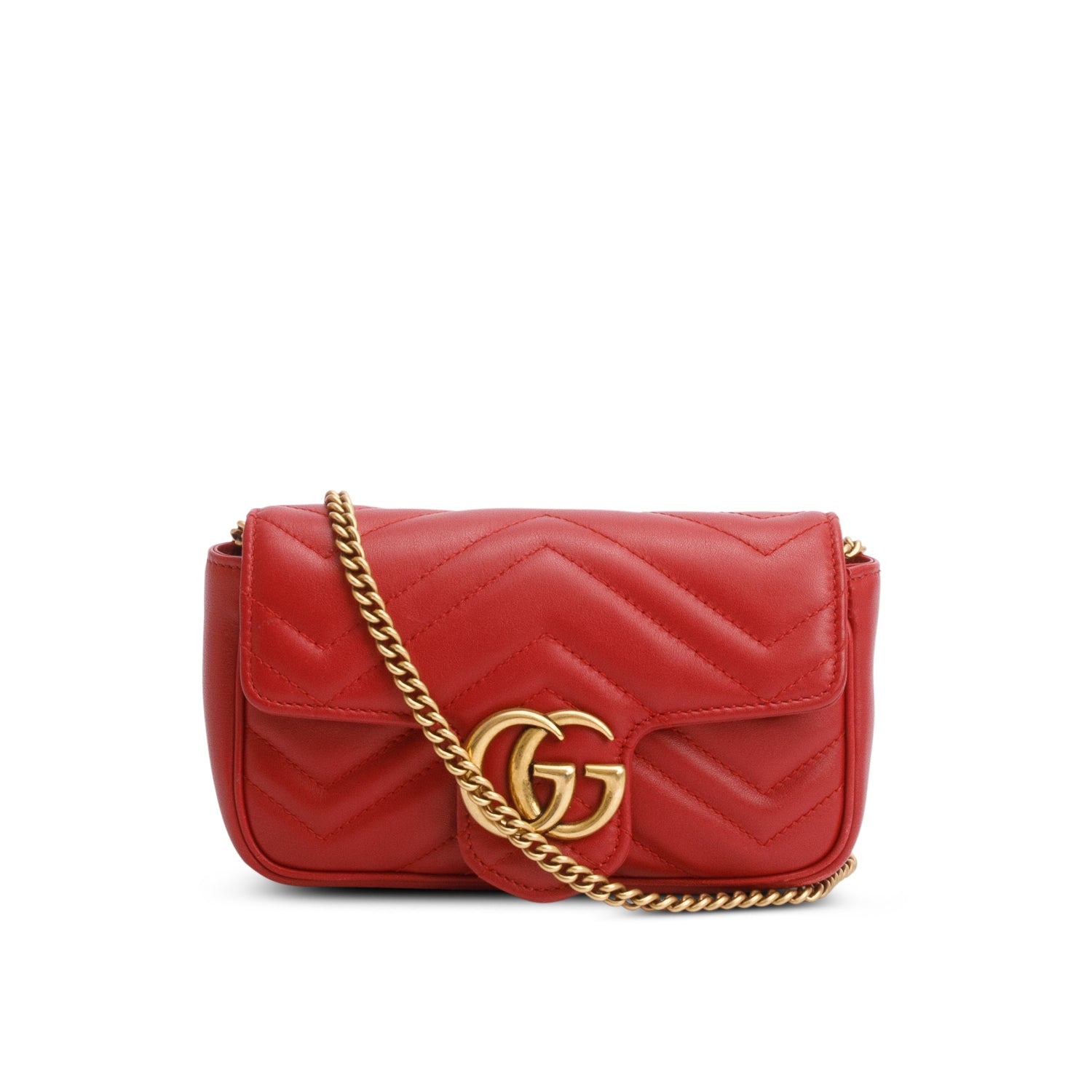 Red GG Marmont Matelasse Leather Super Mini Bag