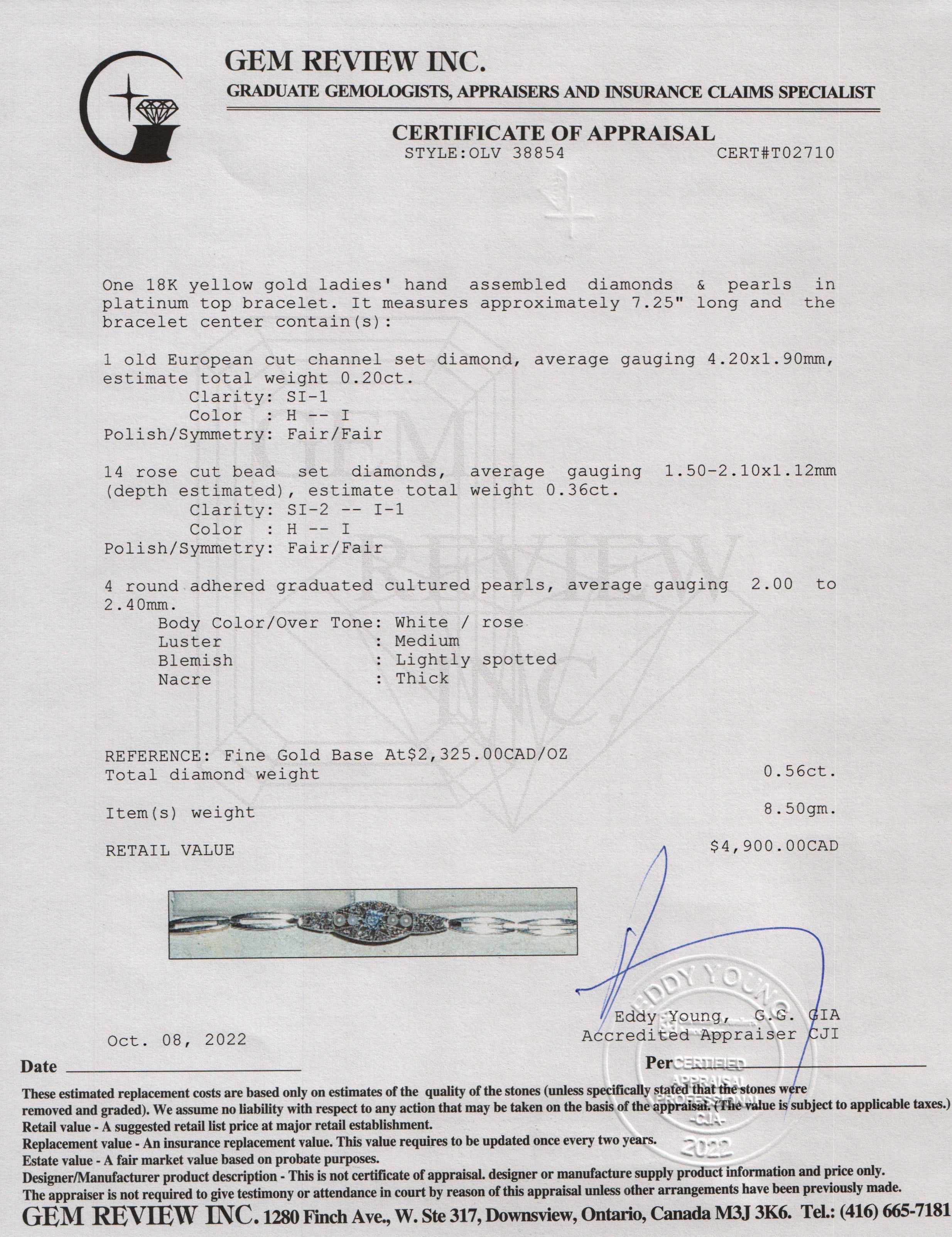 Antique 18k Gold & Platinum Diamond & Pearl Bracelet