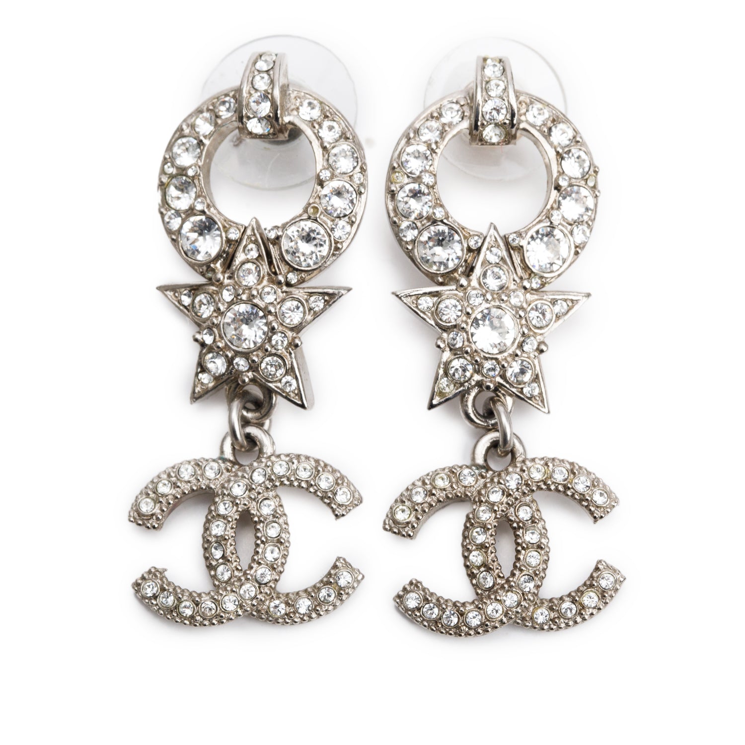 2020 Palladium-Plated Strass Star & CC Drop Earrings w/ Box