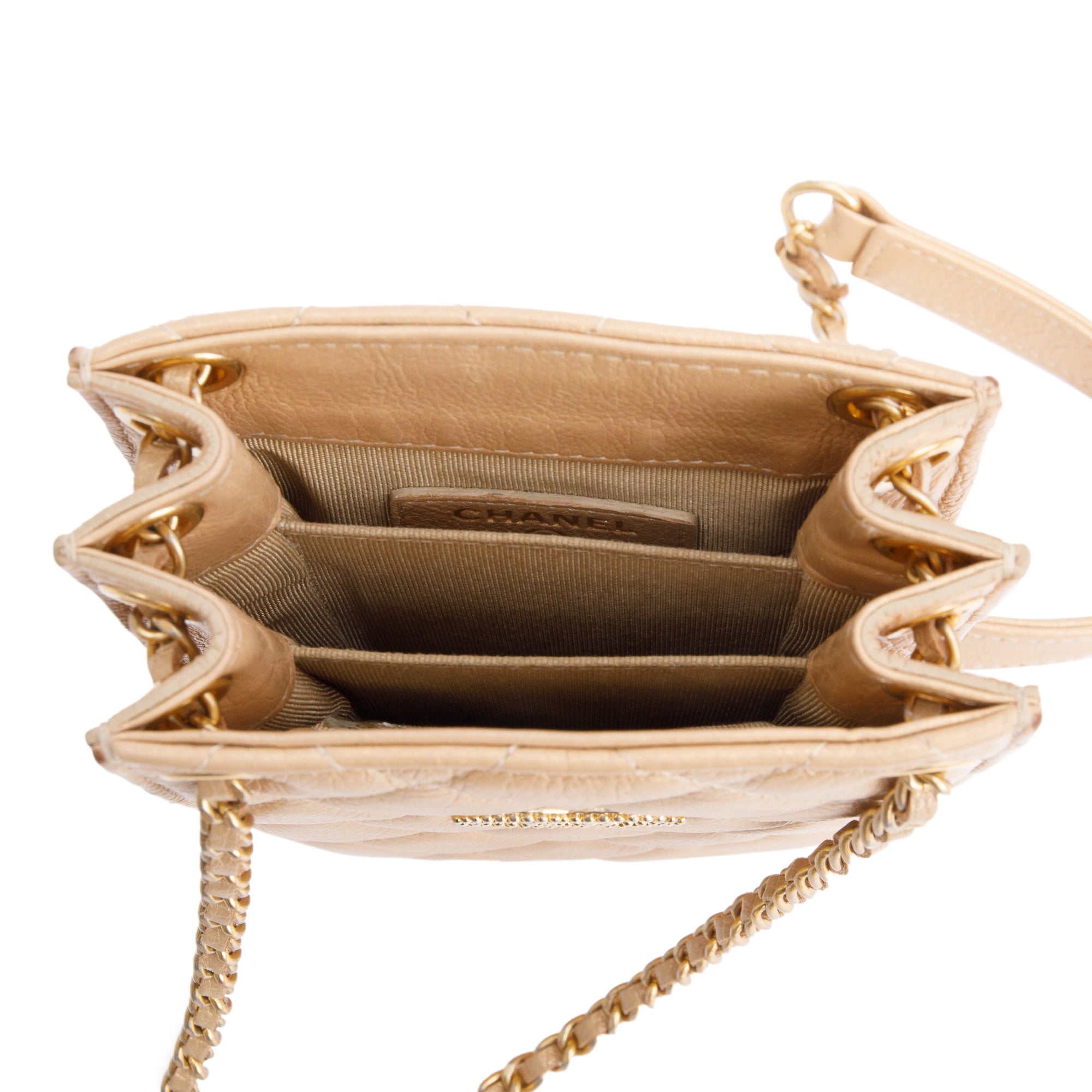 Beige Iridescent Quilted Calfskin Leather CC Crossbody Phone Holder