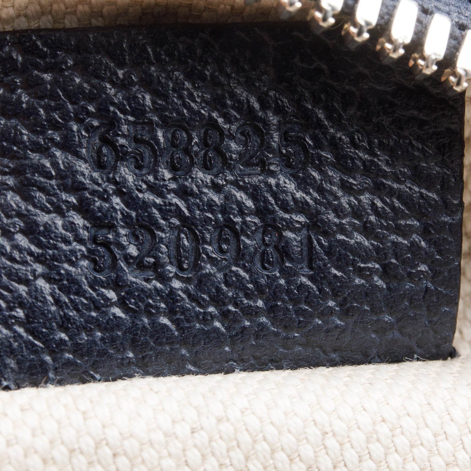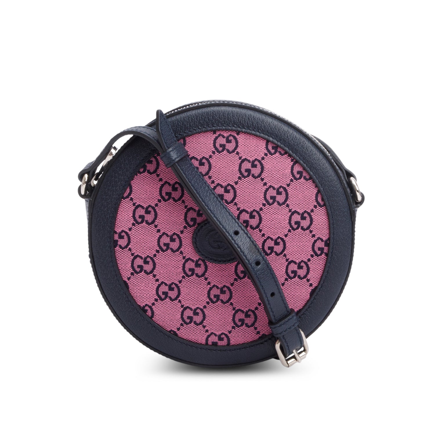 Pink GG Canvas Navy Leather Mini Round Crossbody Bag