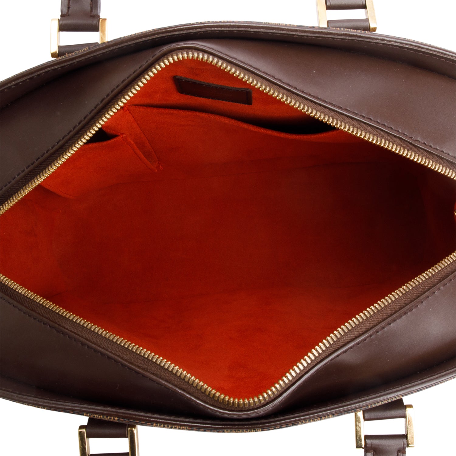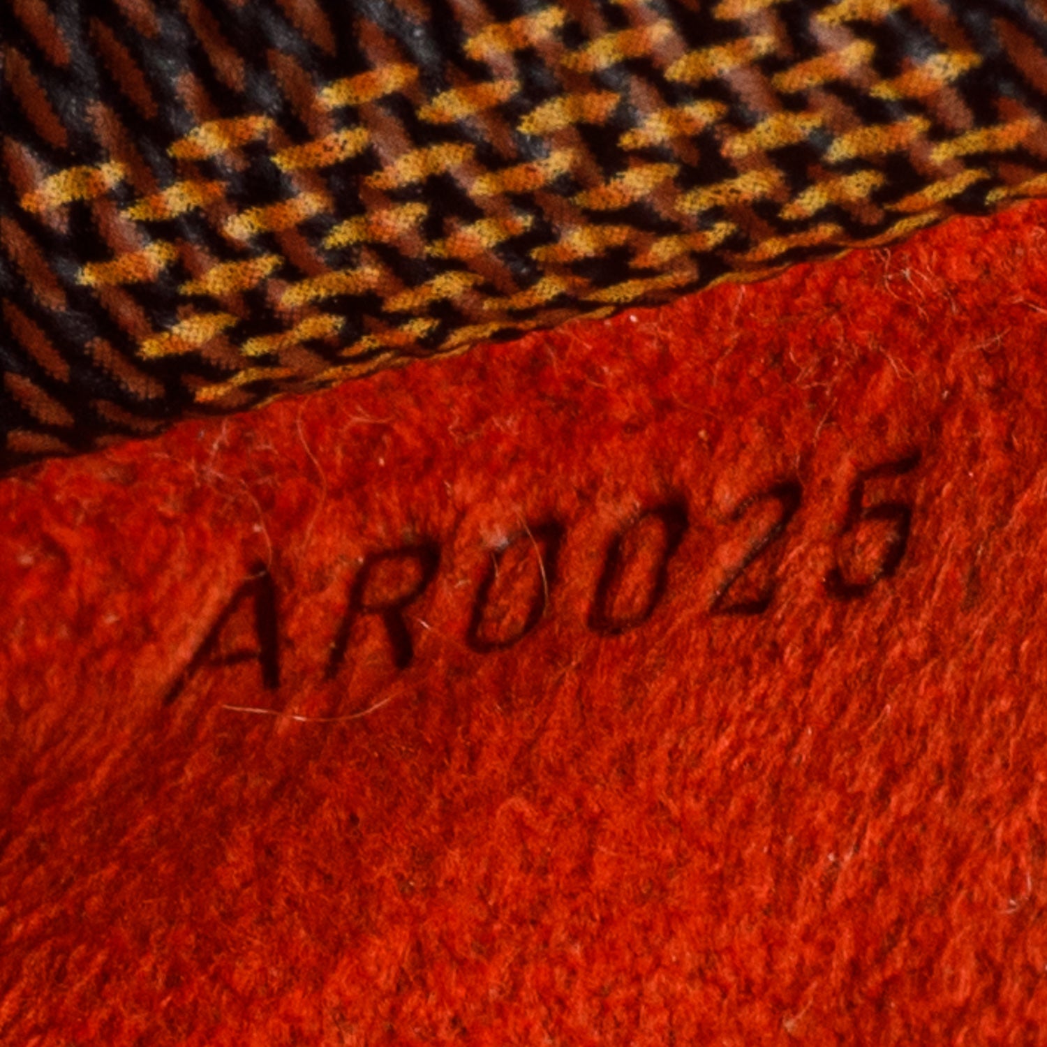 Condition: Very Good; slight scratches at exterior leather; minor marks and tarnishing at hardware; minor marks at interior.