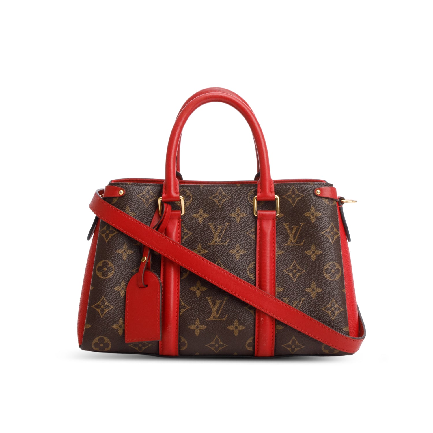 Condition: Very Good; minor scuffing at exterior corners; some creasing and discoloration at handles and straps; slight wear at interior and scratches at hardware.