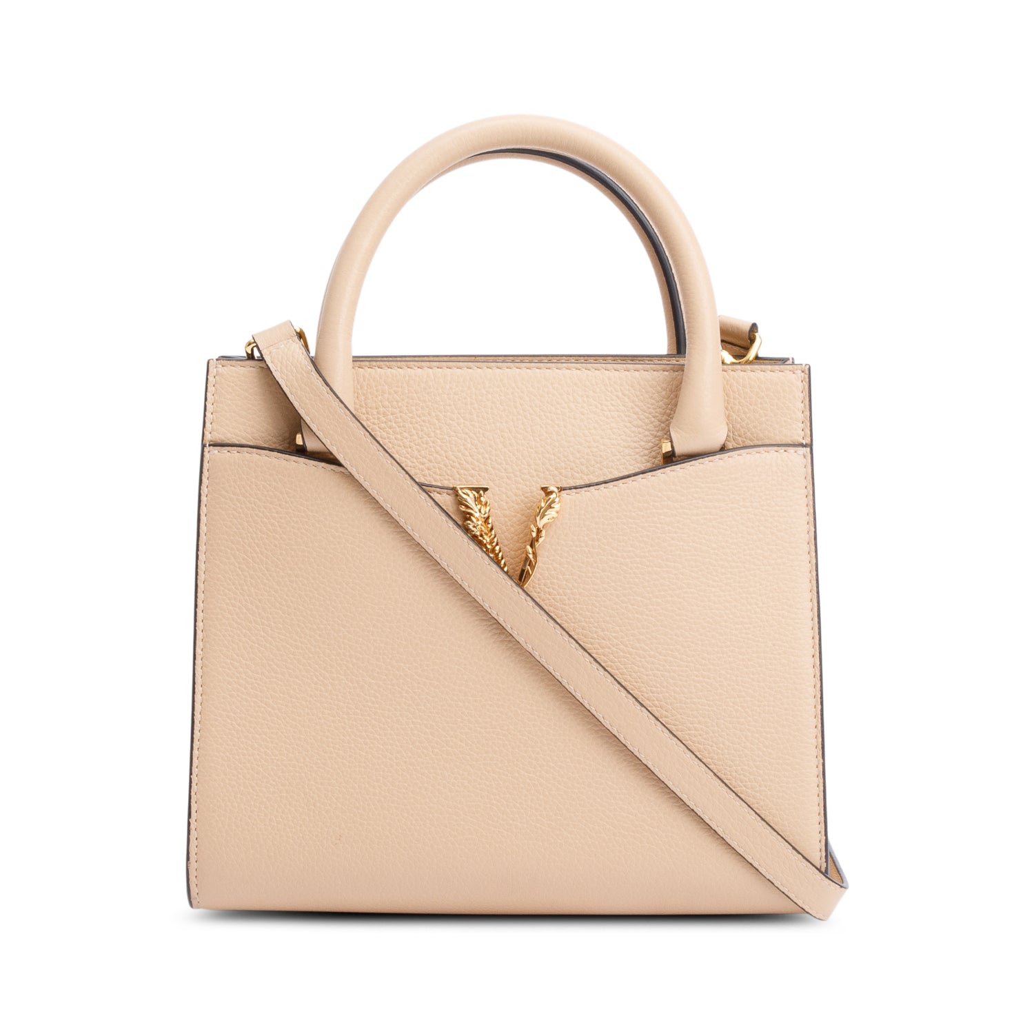 Beige Grained Leather Virtus Small Top Handle Bag w/ Strap & Authenticity Card