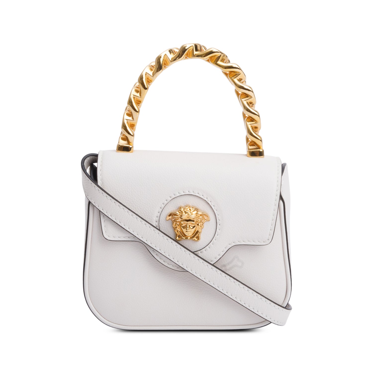 White Calfskin Leather La Medusa Mini Handle Bag w/ Strap
