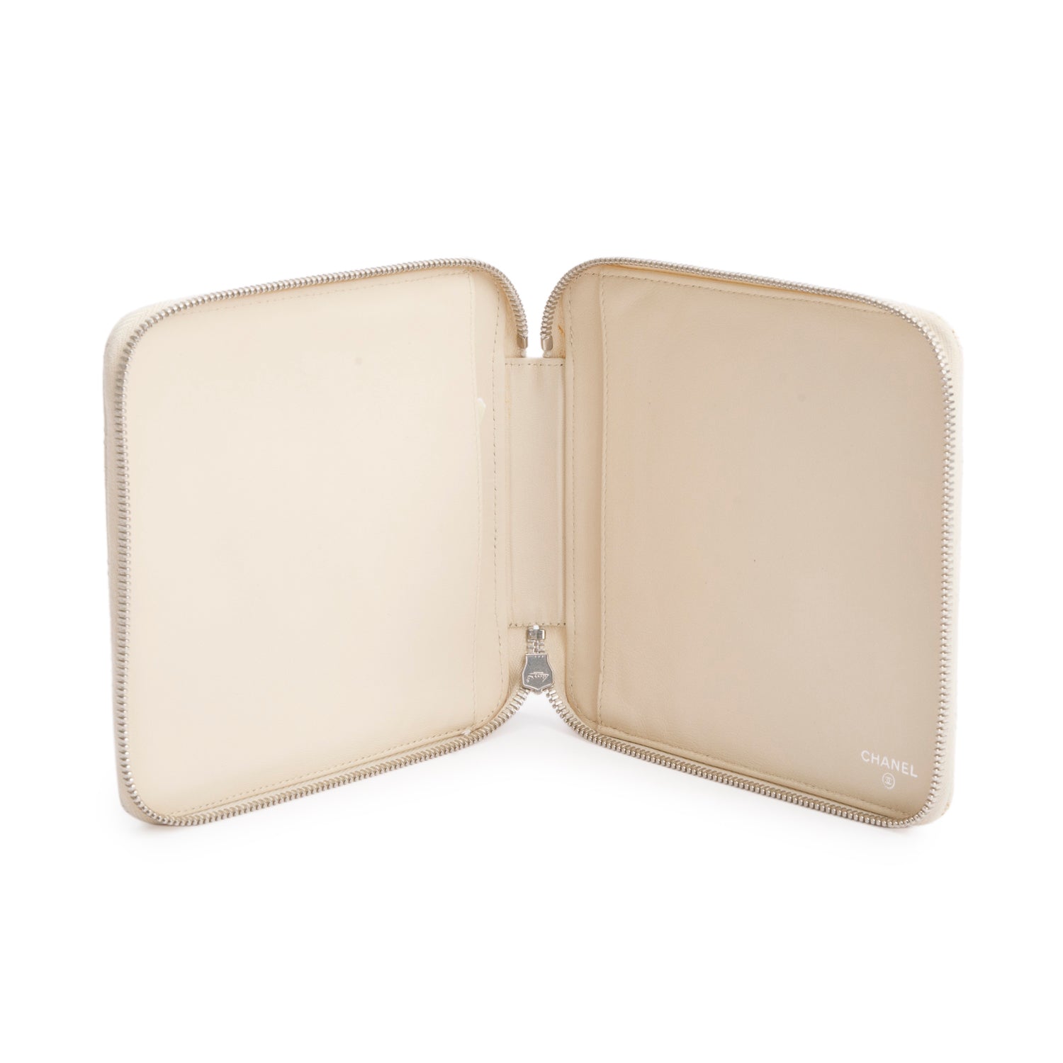 Cream Lambskin Quilted Zipped Tavel Pouch w/ Authenticity Card & Receipt