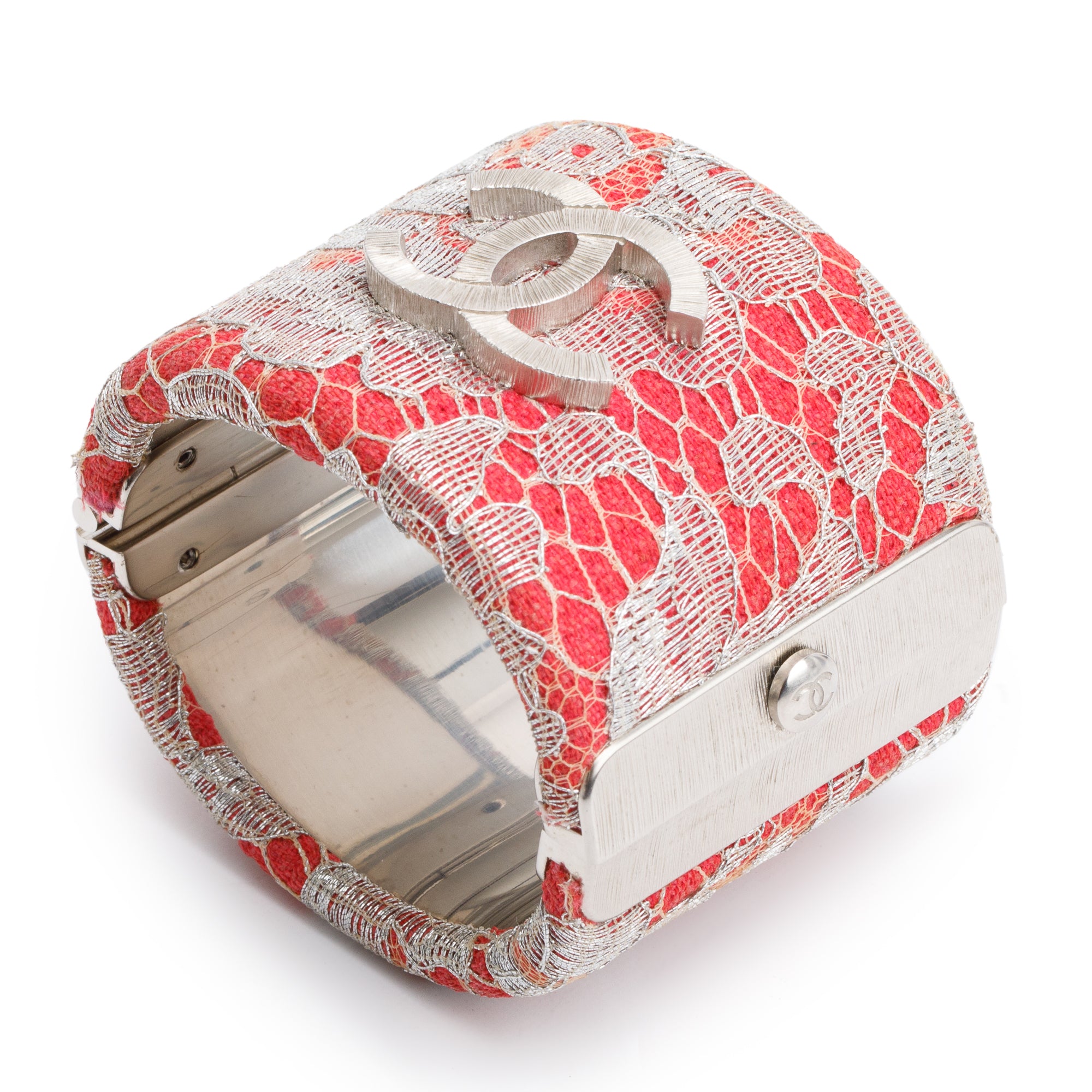Palladium Plated Red Tweed CC Cuff Bracelet