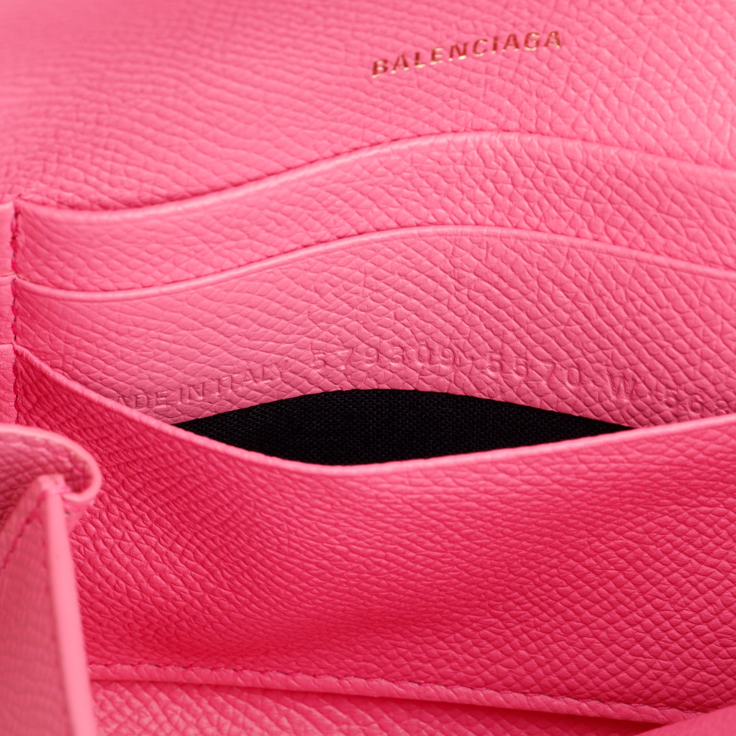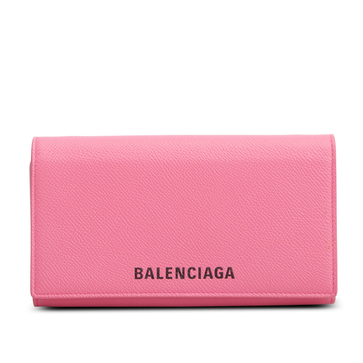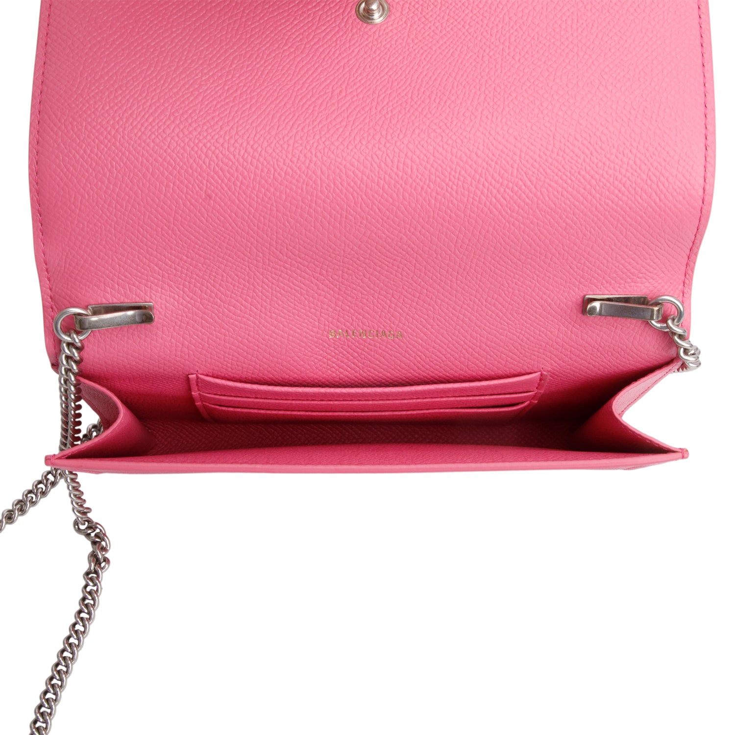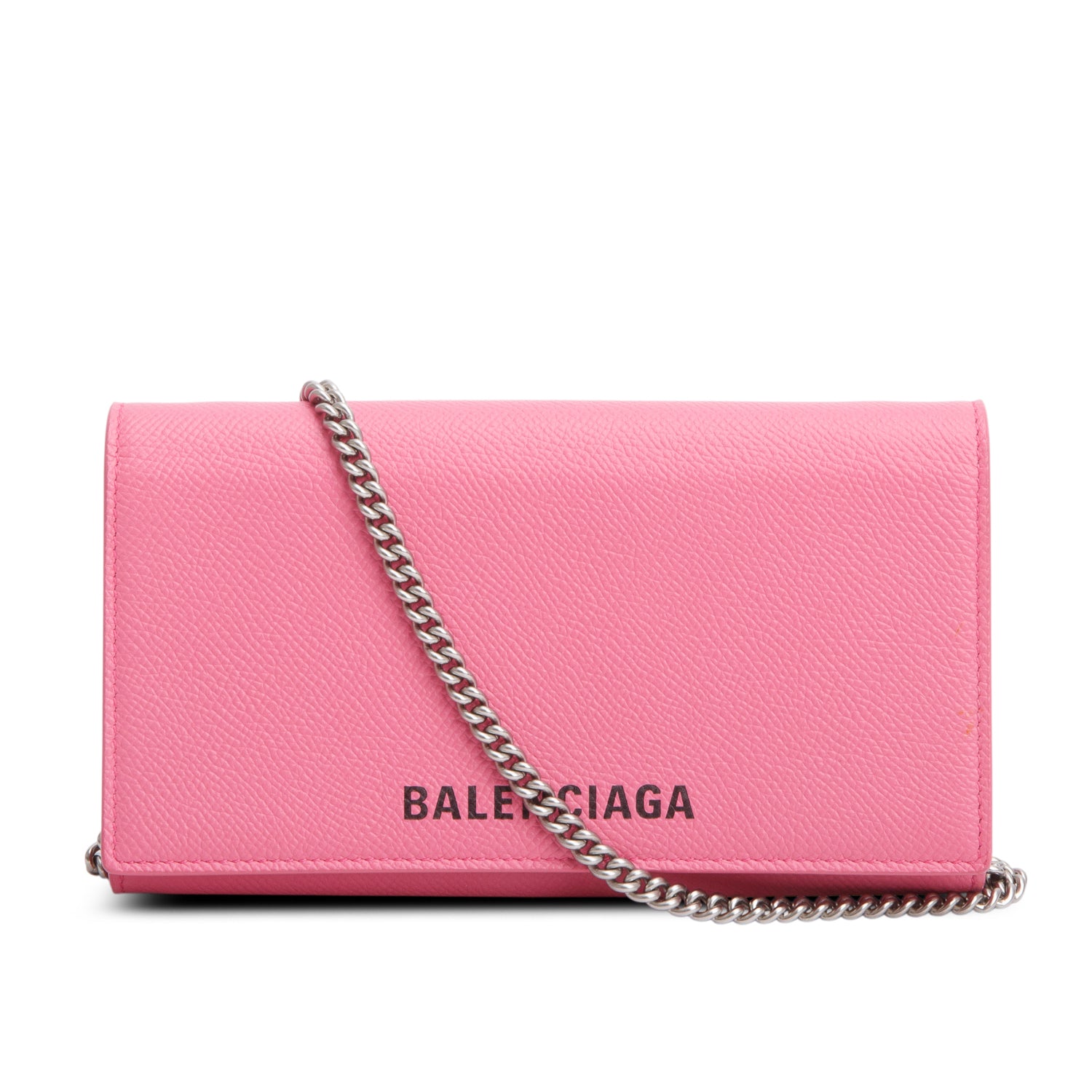 Pink Pebbled Calfskin Logo Everyday Flap Chain Wallet w/ Box