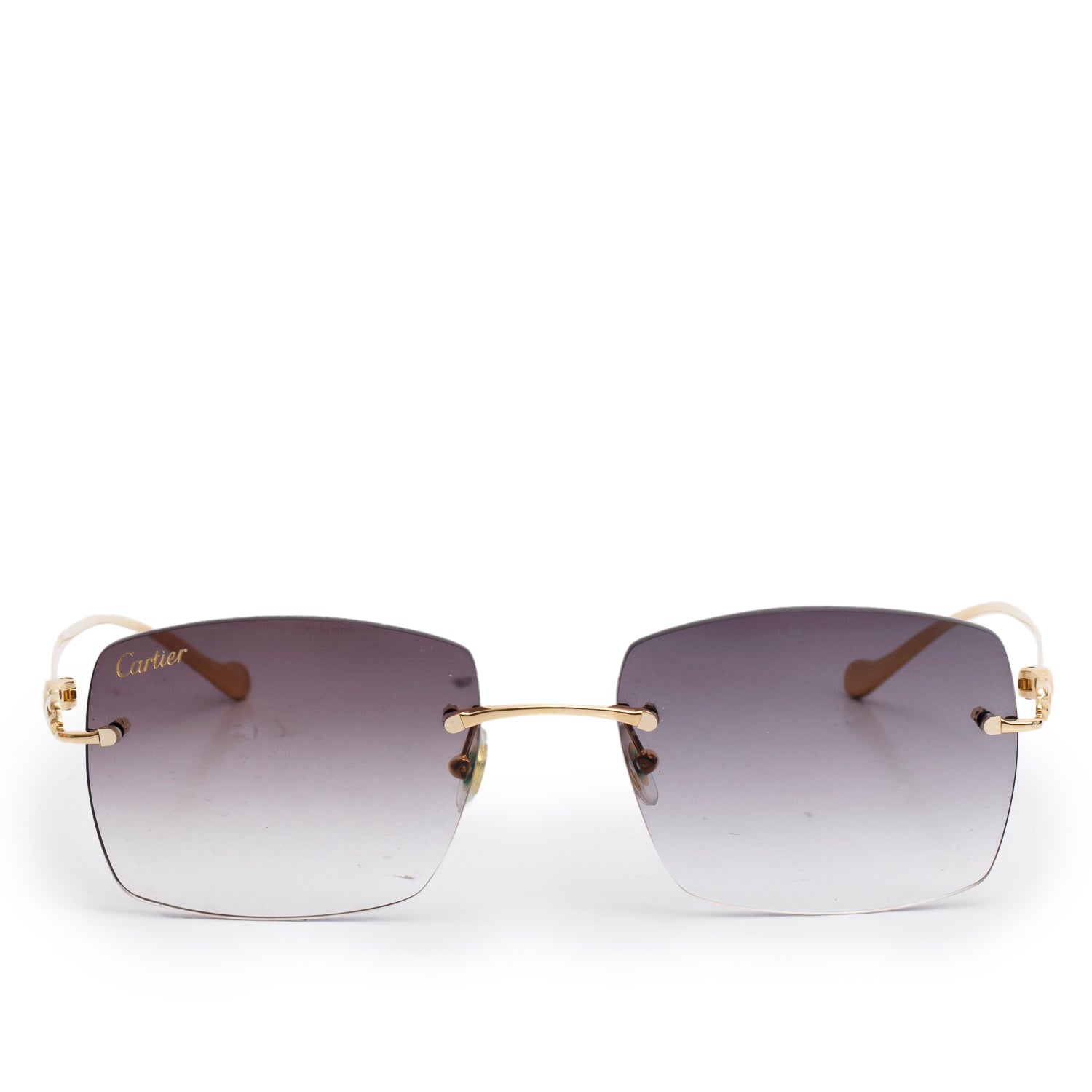 CT00580 Gold-Tone Metal Rimless Square Sunglasses w/ Box & Case