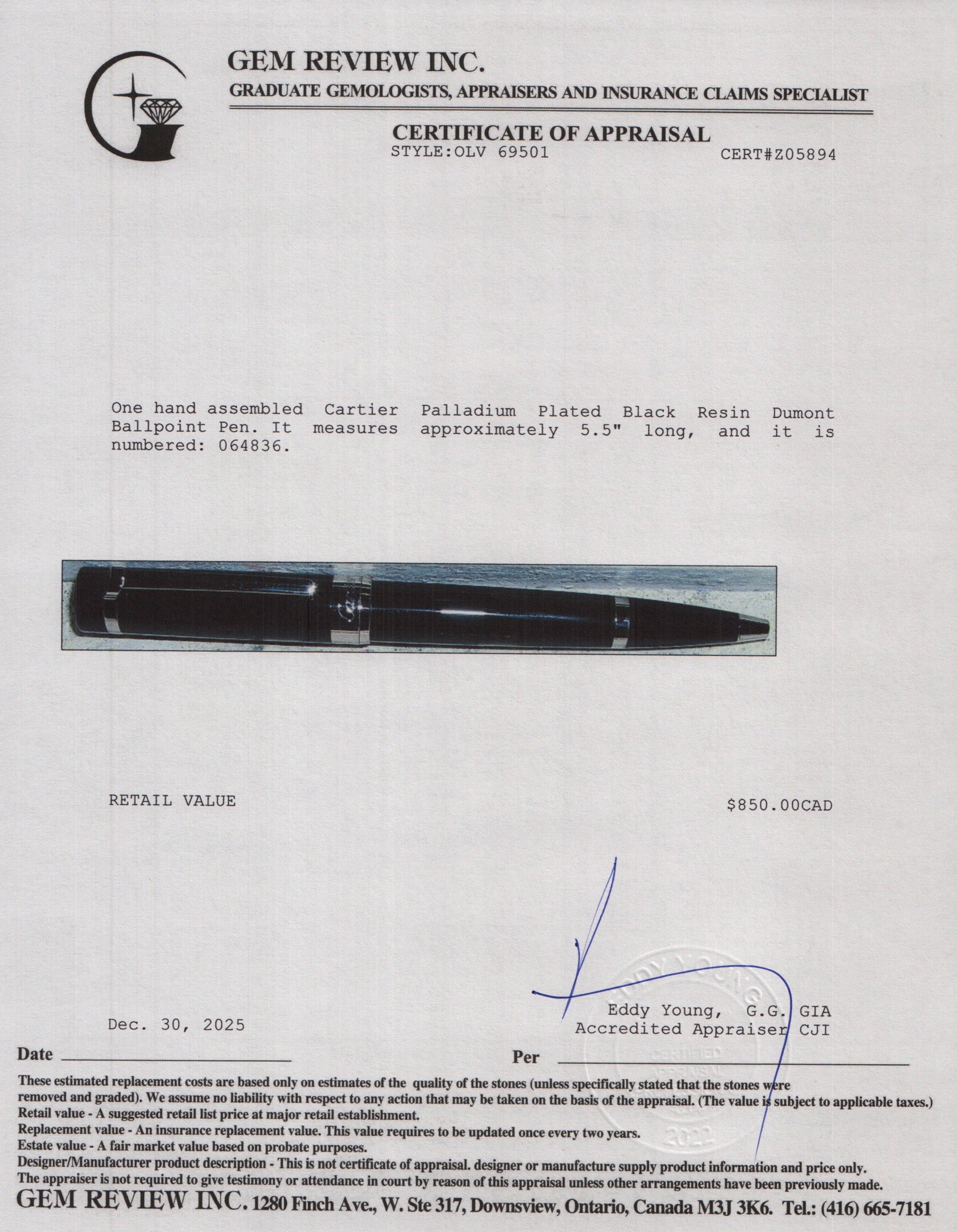 Palladium Plated Black Resin Dumont Ballpoint Pen w/ Box