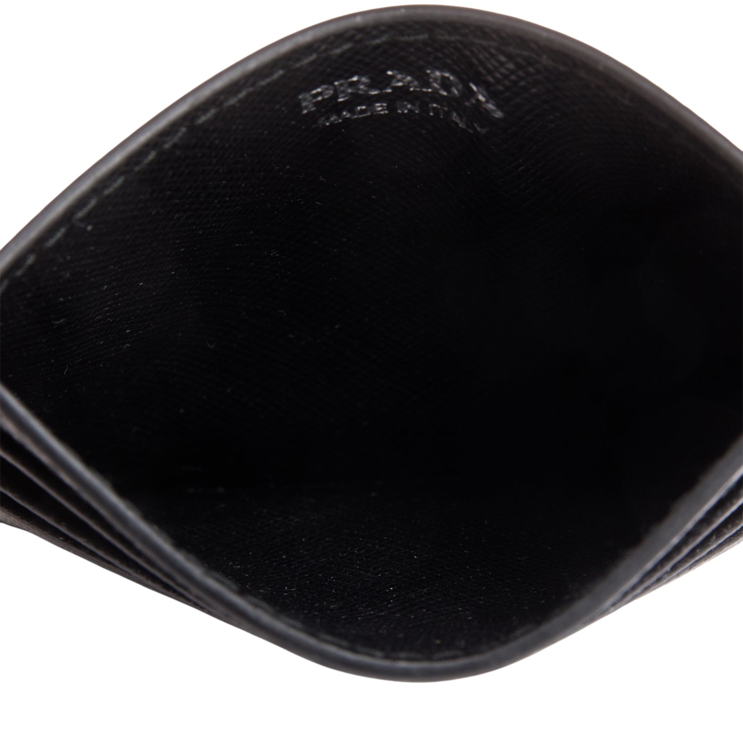 2020 Black Saffiano Leather Triangle Card Case w/ Box & Authenticity Card
