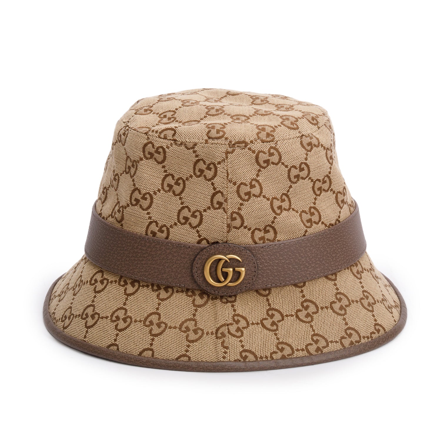 Brown Monogram Textured Dollar Calfskin GG Canvas Bucket Hat, Size S 57