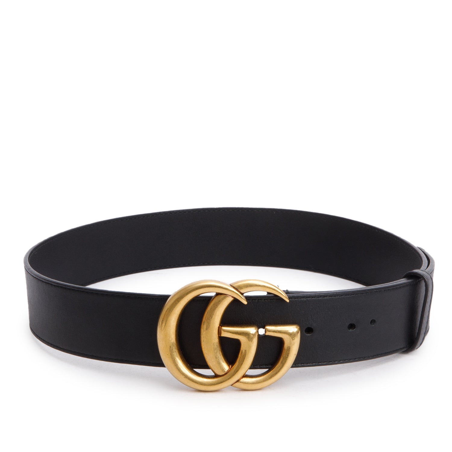 Black Leather GG Marmont Wide Belt 110 44 w/ Box