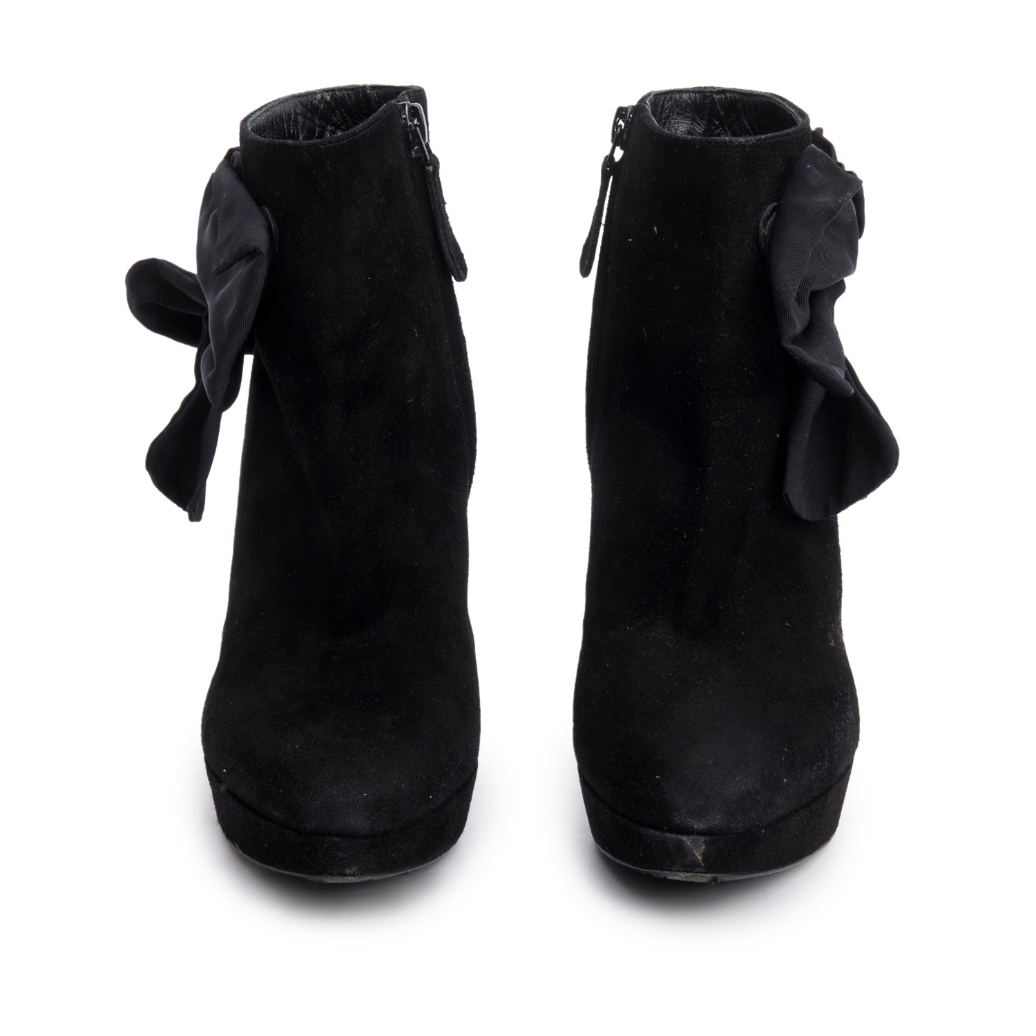 Black Shiny Calfskin Leather Chelsea Boots, Size 35