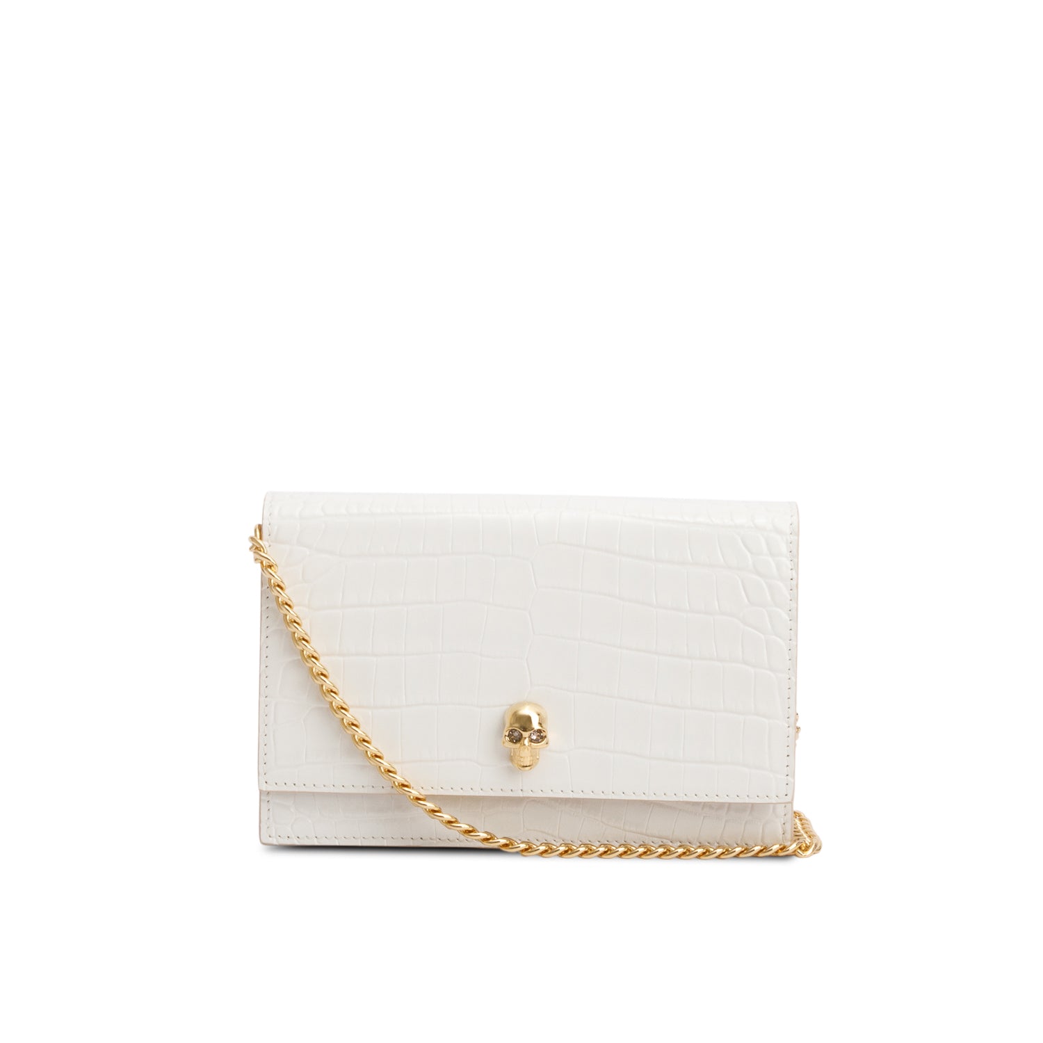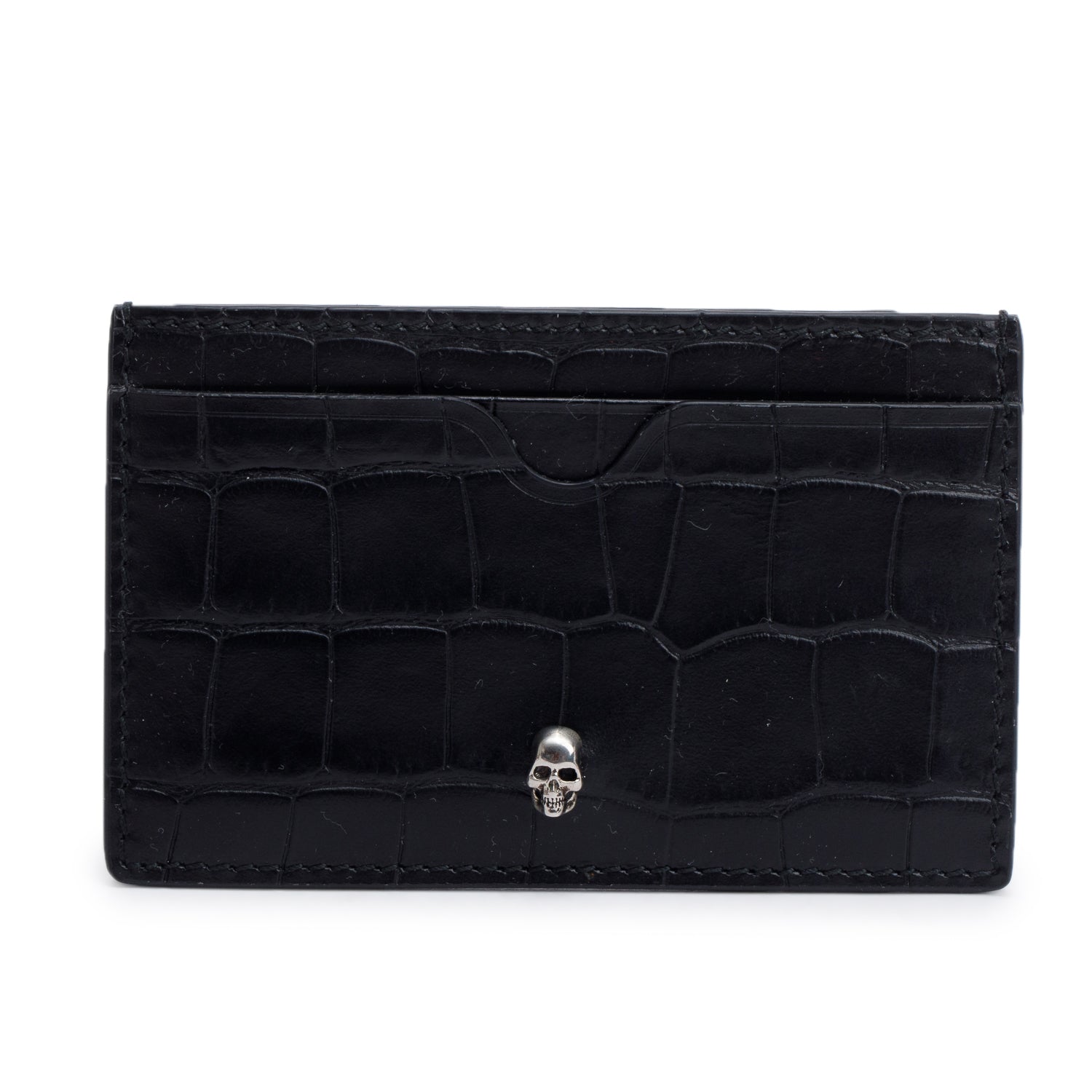 Grey Croc Embossed Leather Skull Envelope Card Holder w/ Box