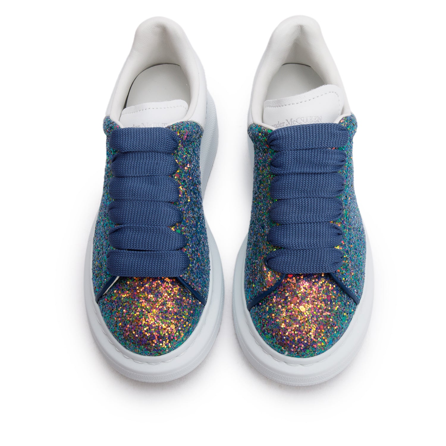 White Leather Glitter Disco Kid's Sneakers, Size 30 w/ Box