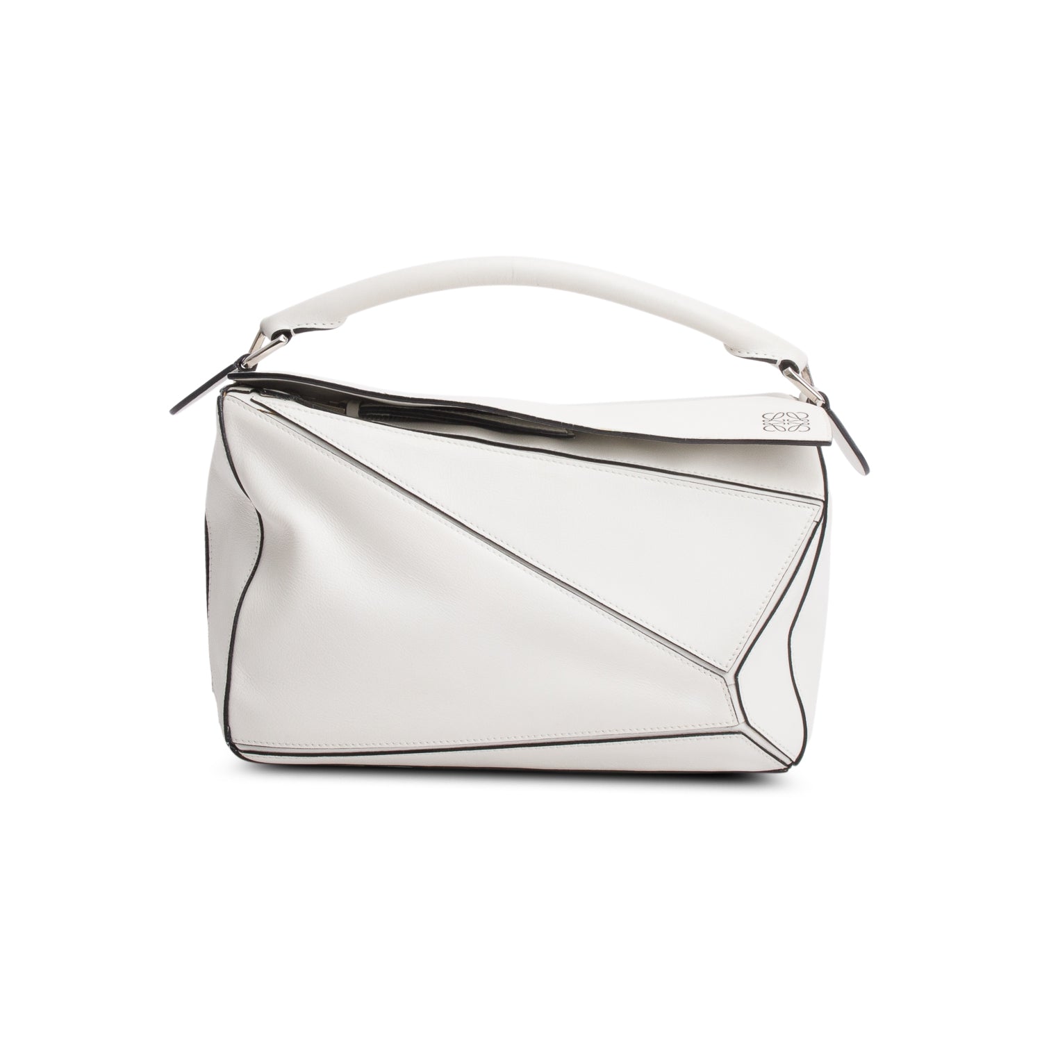 White Calfskin Leather Medium Puzzle Edge Bag w/ Strap
