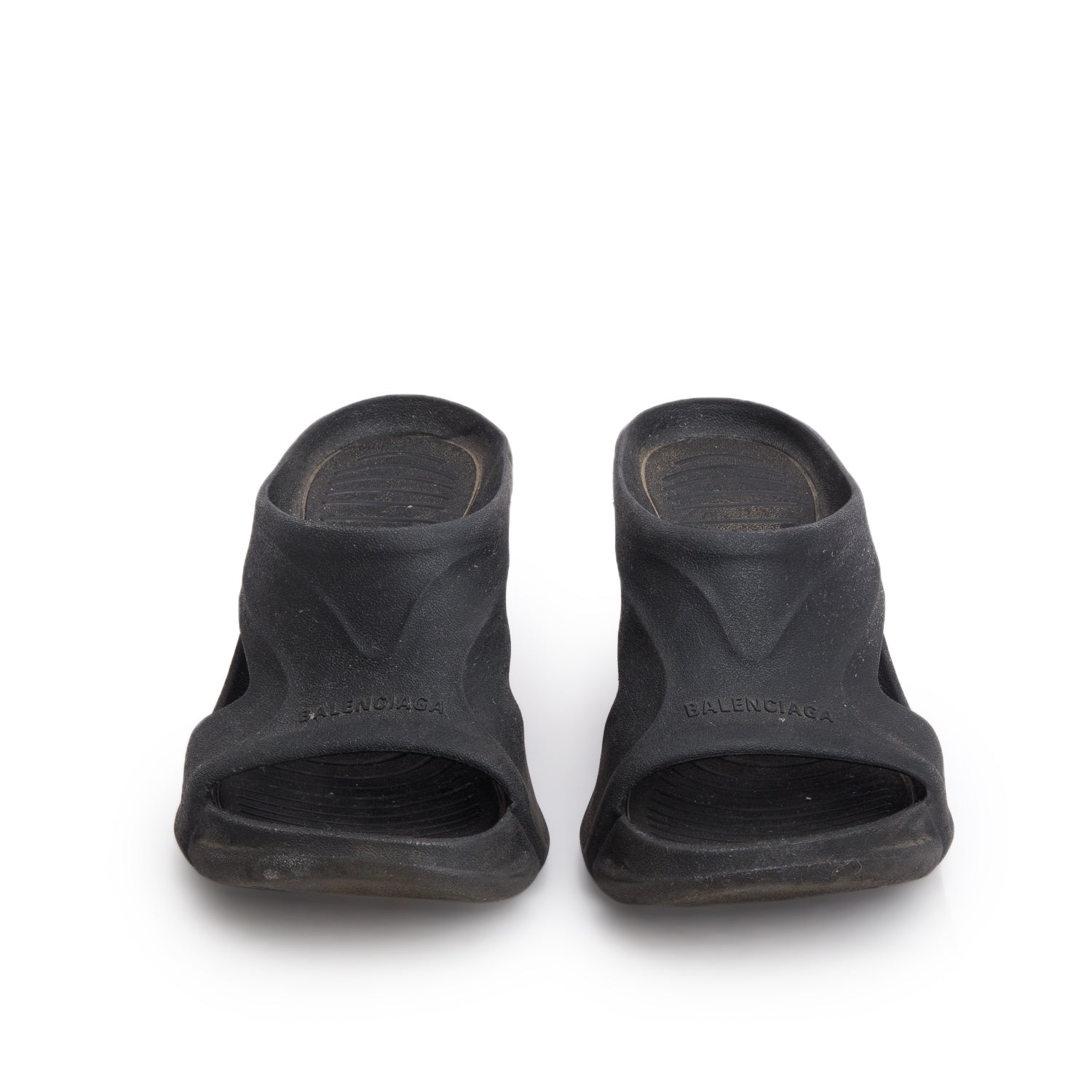 Black Rubber Mold Slide Sandals, Size 39