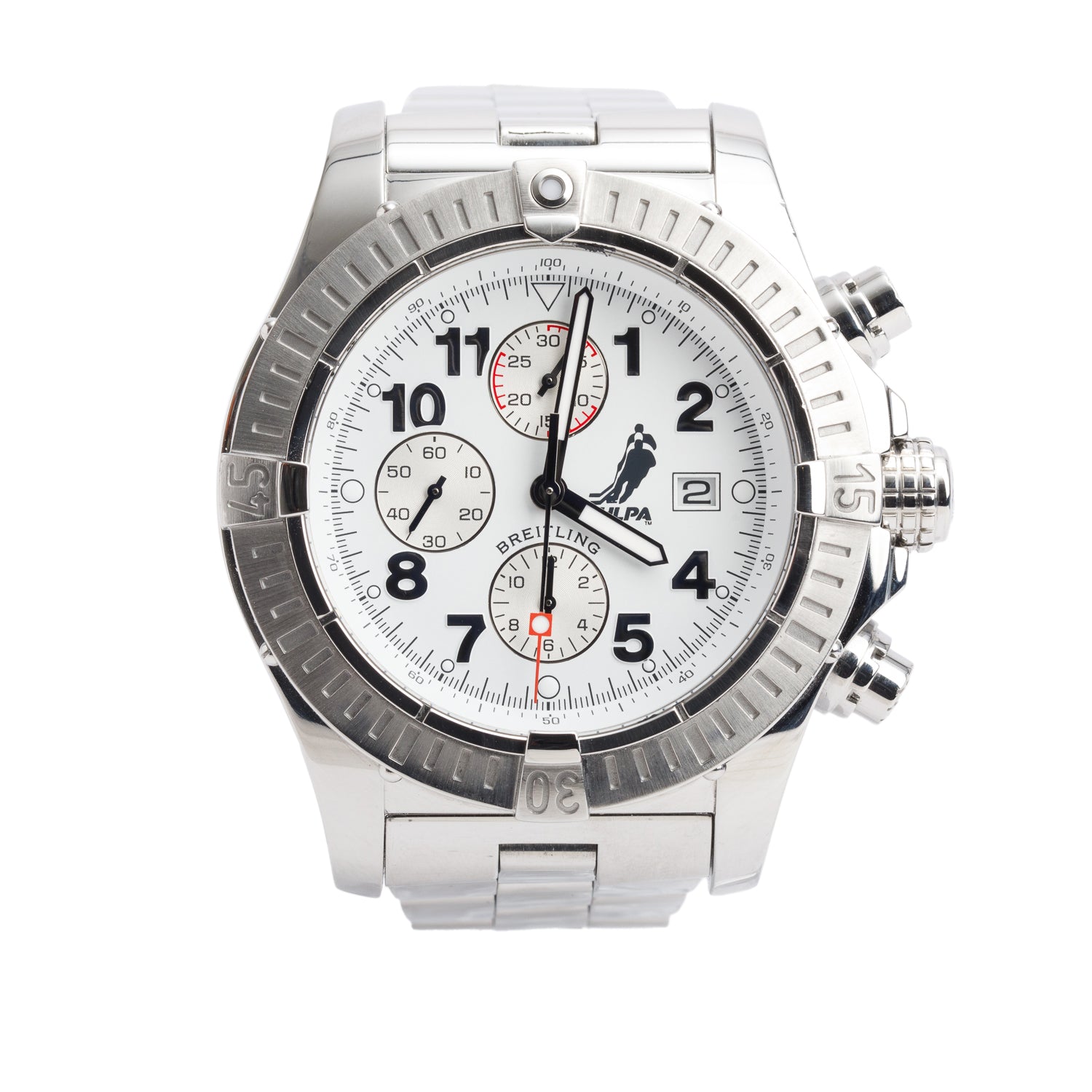 Stainless Steel Super Avenger NHLPA Special Edition 48 MM Automatic Chronograph Watch White Dial A13370