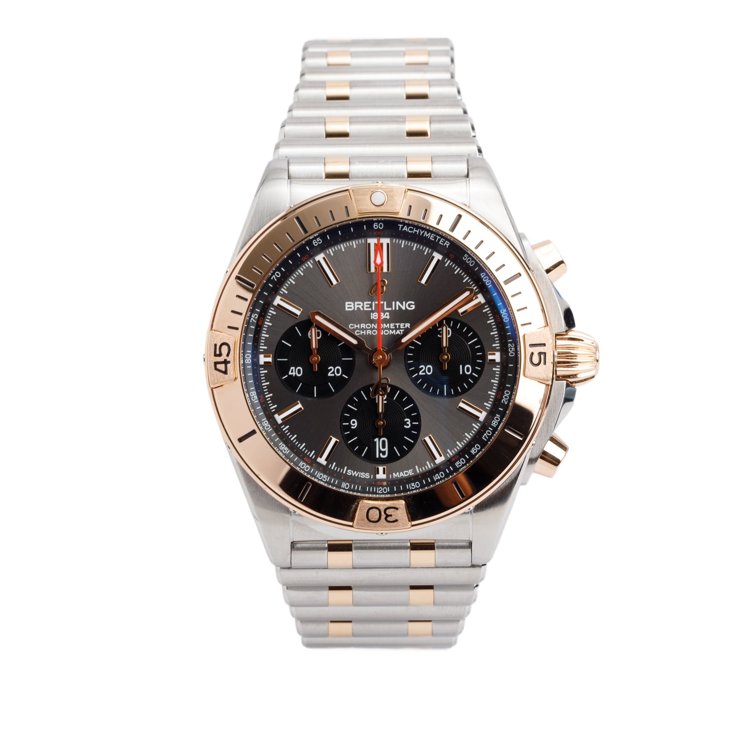 Stainless Steel & 18k Rose Gold Chronomat B01 42 MM Chronograph Automatic Watch Grey Dial UB0134 w/ Box & Papers