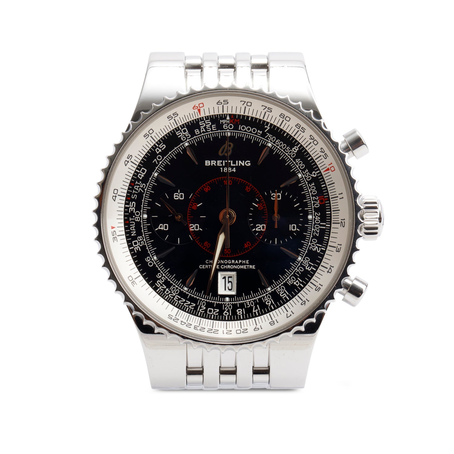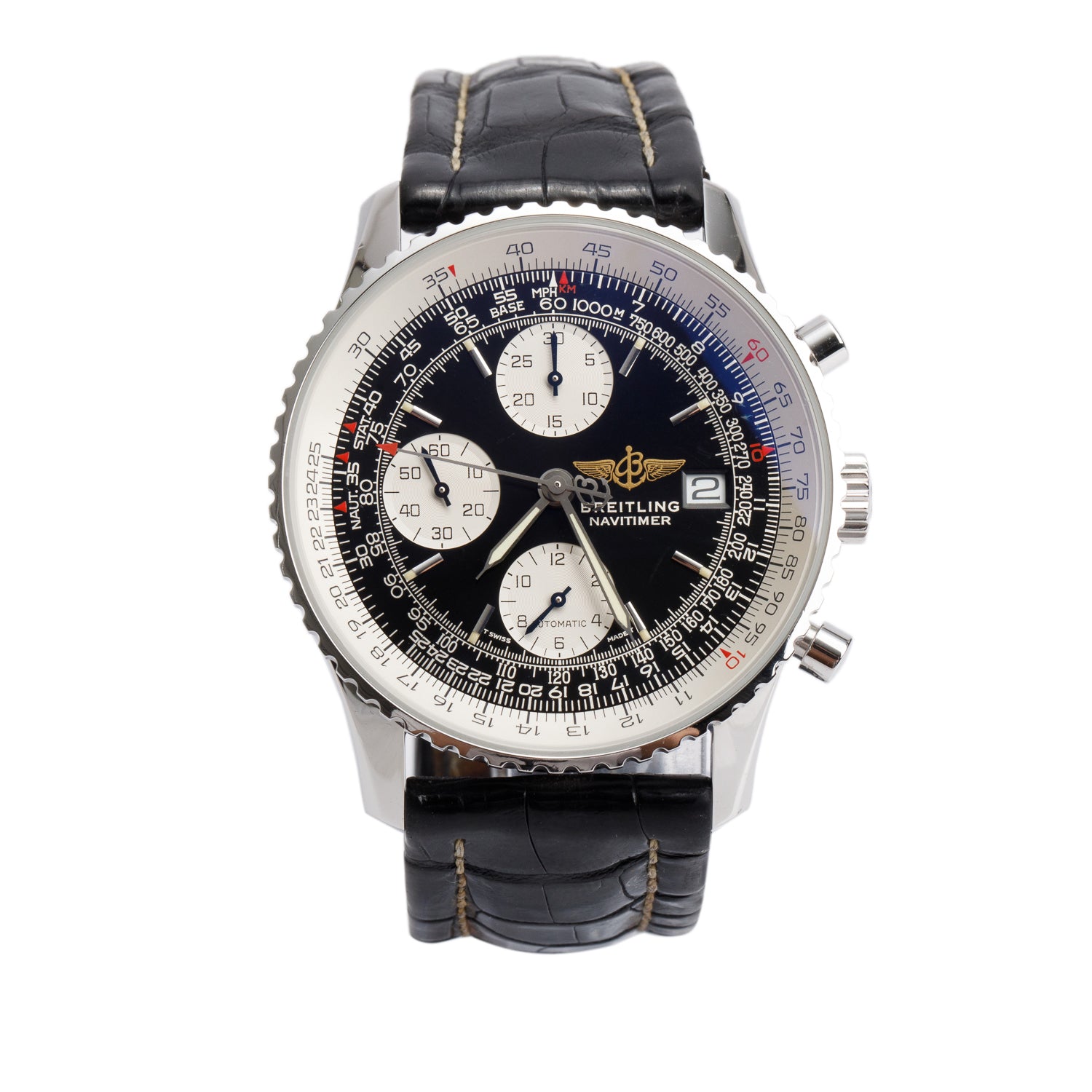 Stainless Steel Navitimer II 41 MM Chronograph Automatic Watch Black Dial A13022