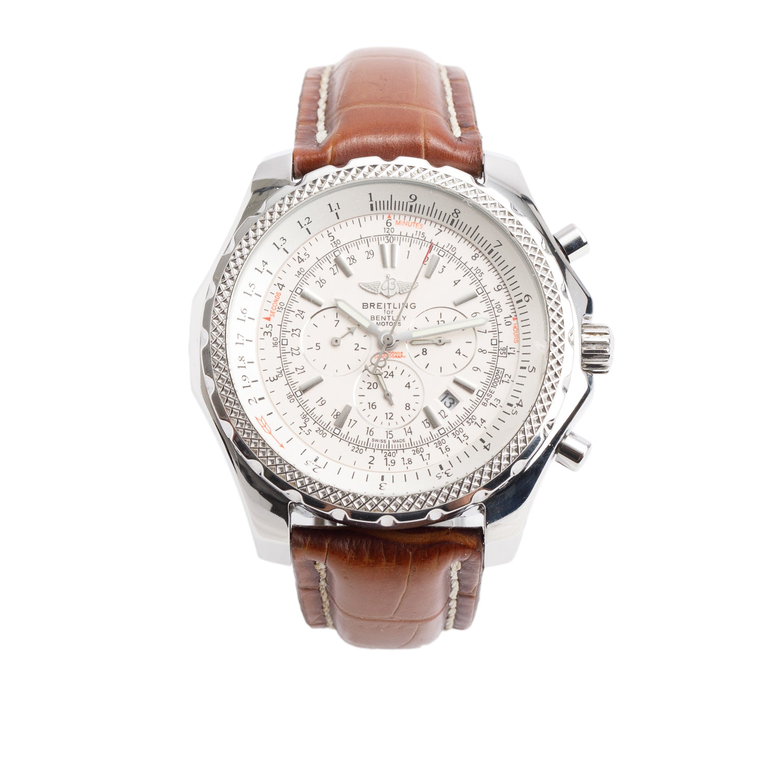 Stainless Steel Special Edition Bentley Motors 48 MM Automatic Chronograph White Dial Watch A25362