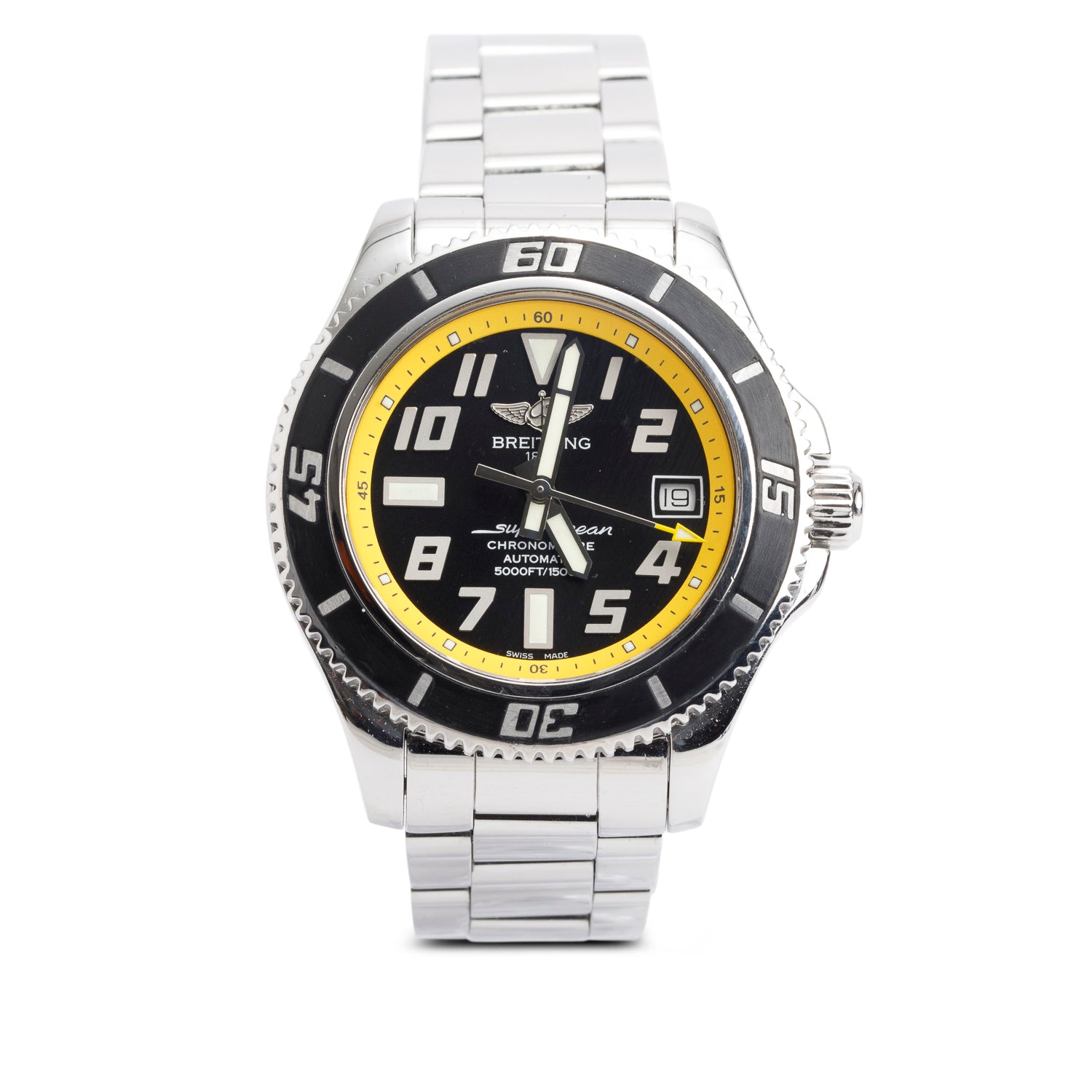 Stainless Steel Superocean 42 MM Automatic Watch Black & Yellow Dial A17364 w/ Case & Papers