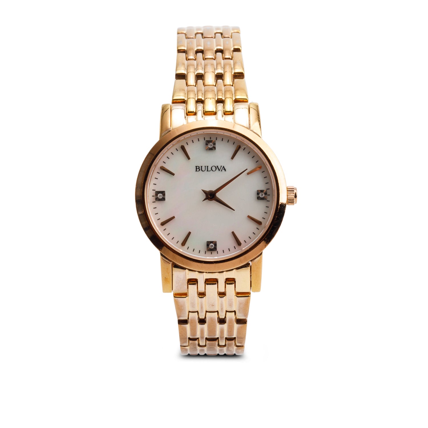 Rose-Gold Plated Stainless Steel 27 MM Ladies Quartz Watch Mother of Pearl Diamond Dial 97P106
