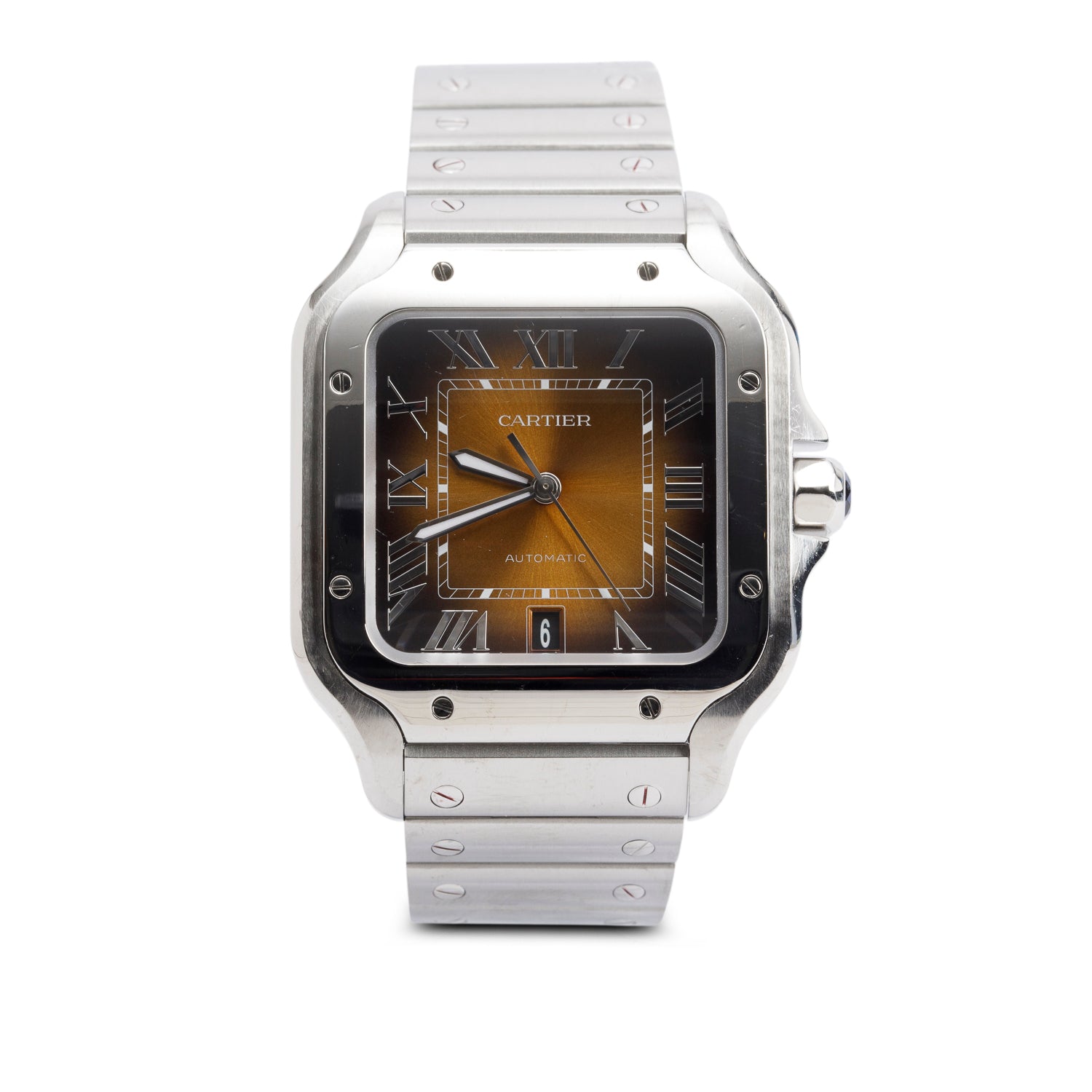2024 Stainless Steel Santos de Automatic Watch, Large Model Brown Dial 4072 w/ Papers