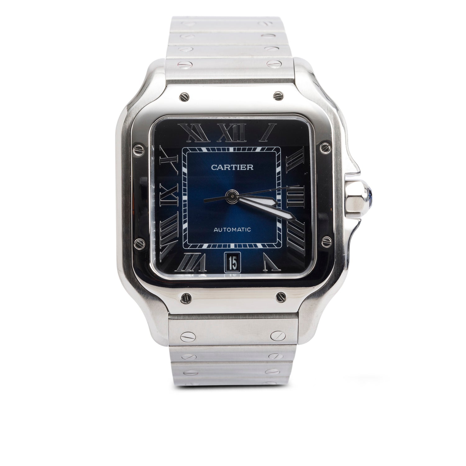 Stainless Steel Santos de Automatic Watch, Large Model Blue Dial 4072 w/ Box & Papers