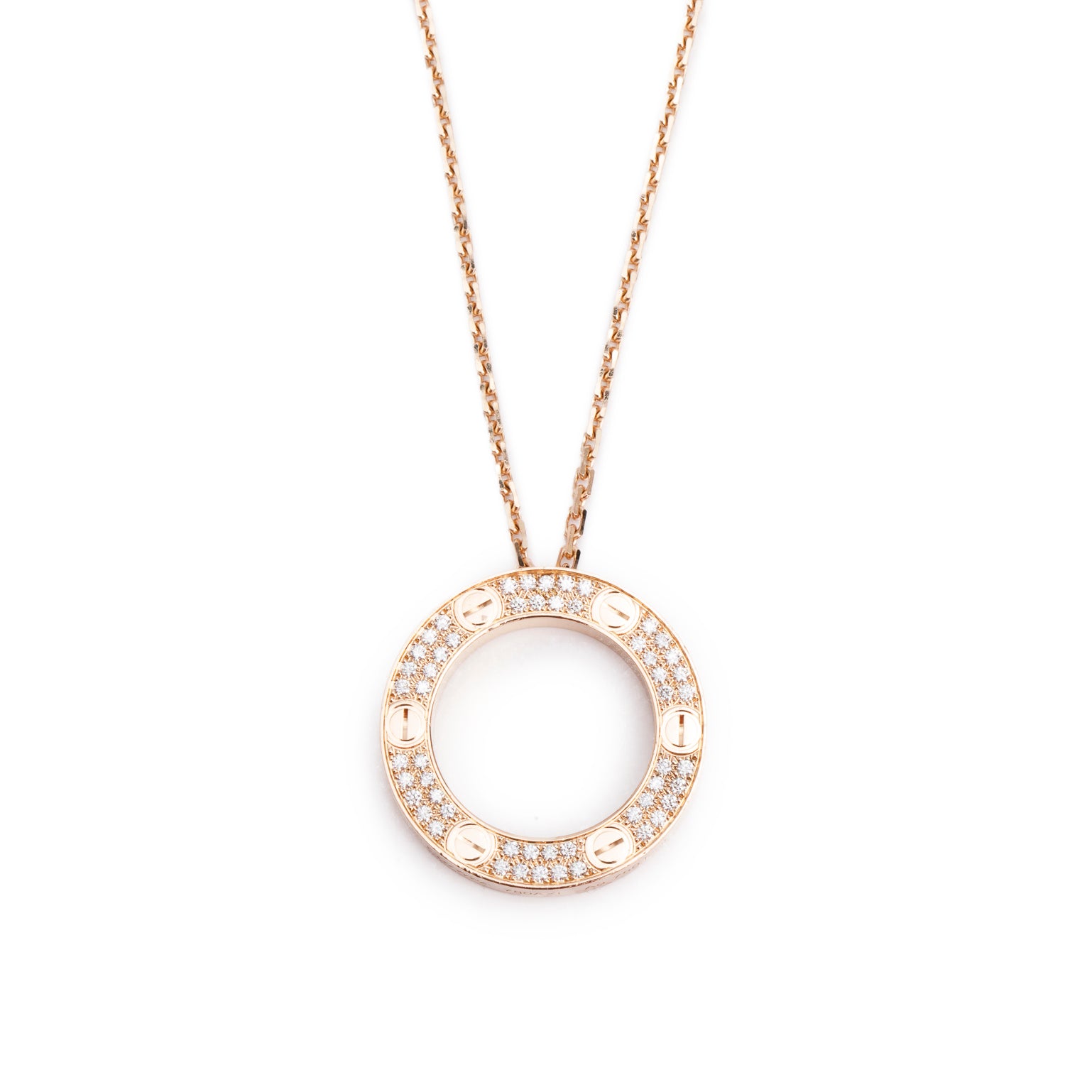 18k Rose Gold Diamond Love Pendant Necklace w/ Box & Certificate