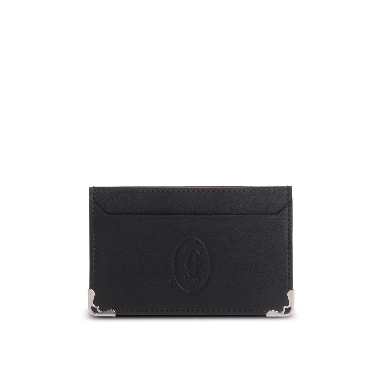 Black Calfskin Logo Embossed Must Card Holder w/ Box