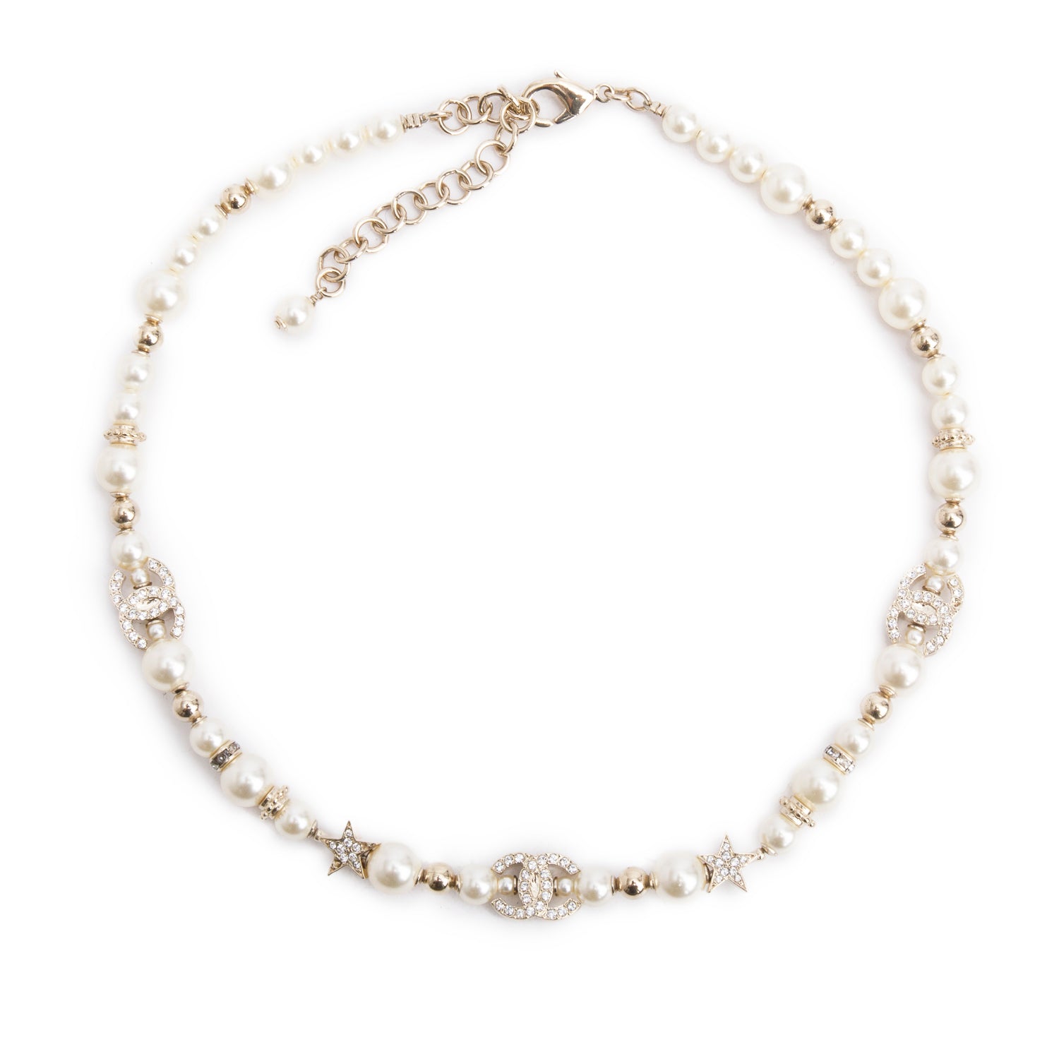 2023 Gold Plated Faux Pearl & Strass CC Star Necklace w/ Box