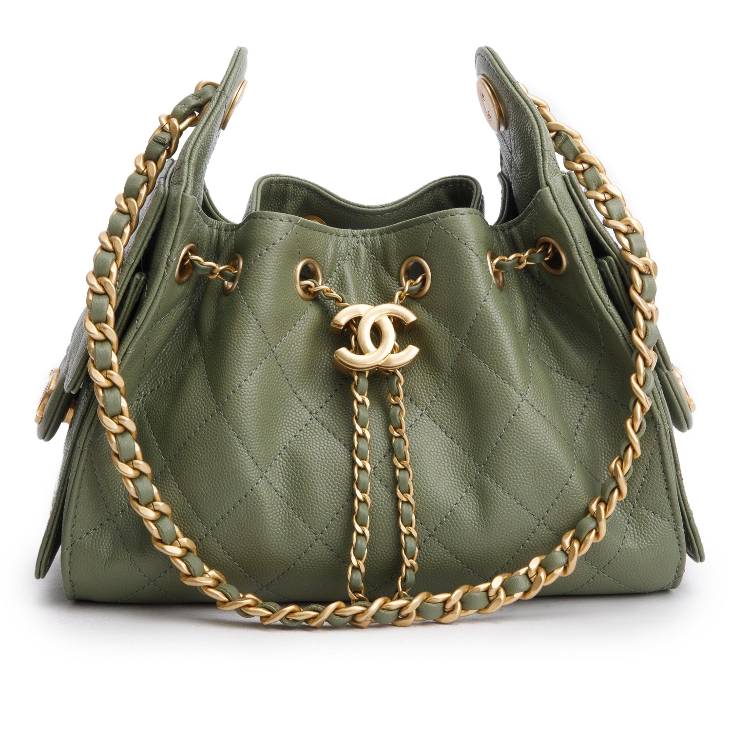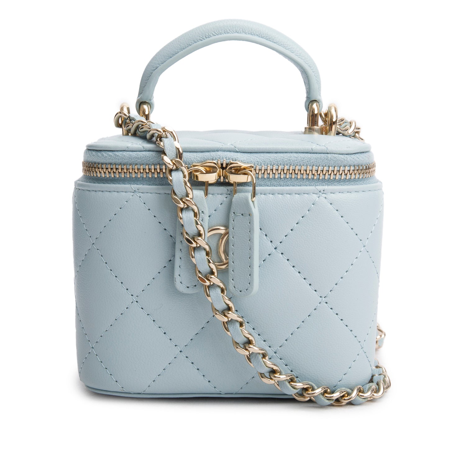 Grey Lambskin Quilted Wallet on Chain WOC w/ Box