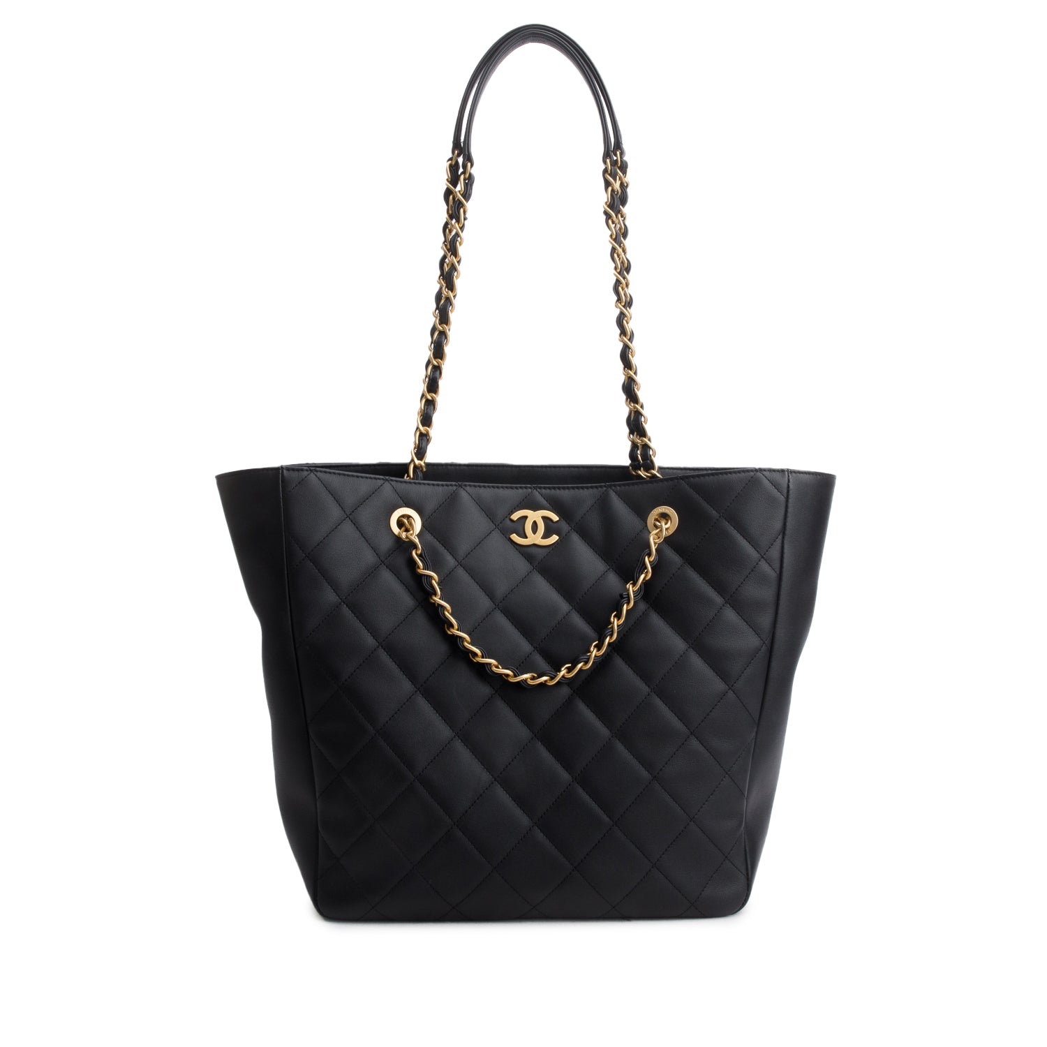 Black Calfskin Stitched Large Shopping Bag w/ Box