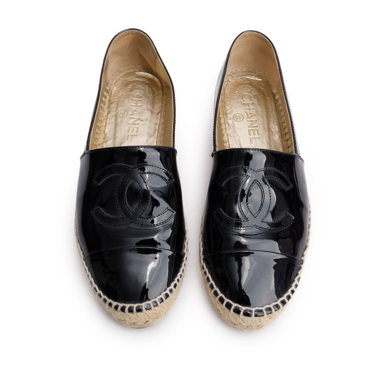 Black Patent Leather CC Espadrilles, Women's Size 37 w/ Box