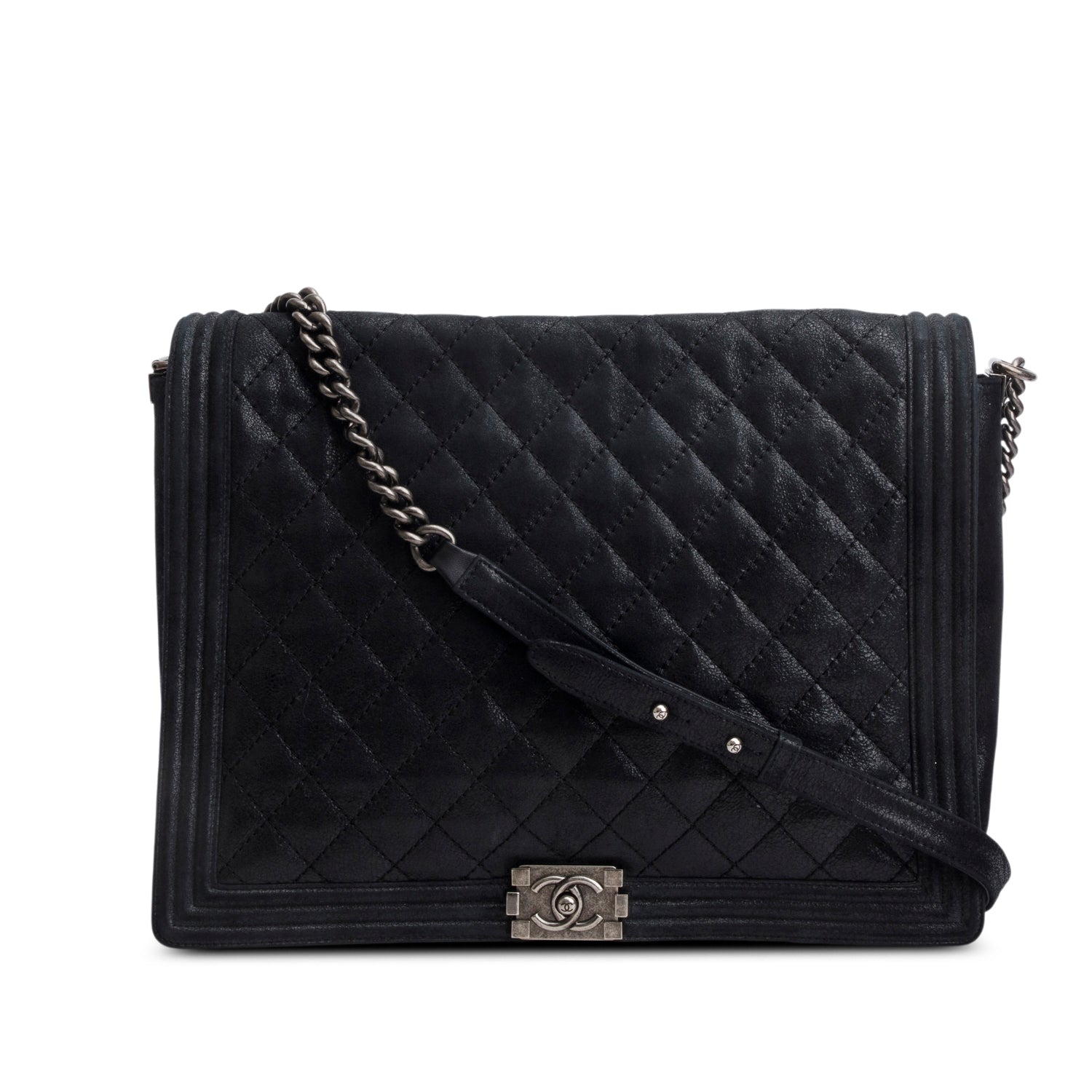 Black Quilted Lambskin Leather Large Boy Bag w/ Receipt & Authenticity Card