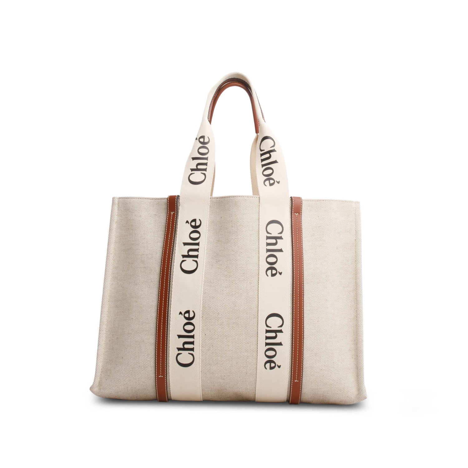 Beige Cotton Calfskin Large Woody Ribbon Tote w/ Authenticity Card
