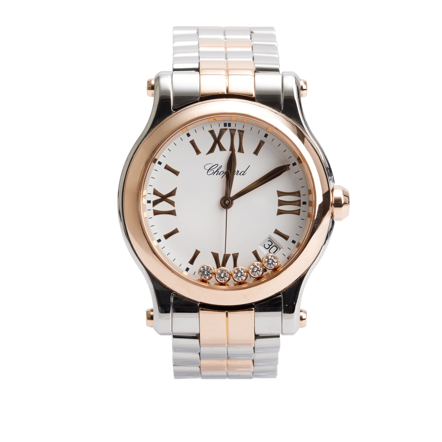Stainless Steel & 18k Rose Gold Happy Sport Diamond 36 MM Quartz Watch w/ Box & Papers