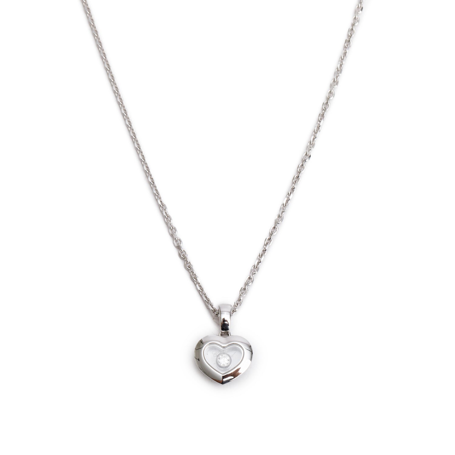 18k White Gold Happy Diamond Icons Heart Pendant Necklace w/ Box & Papers