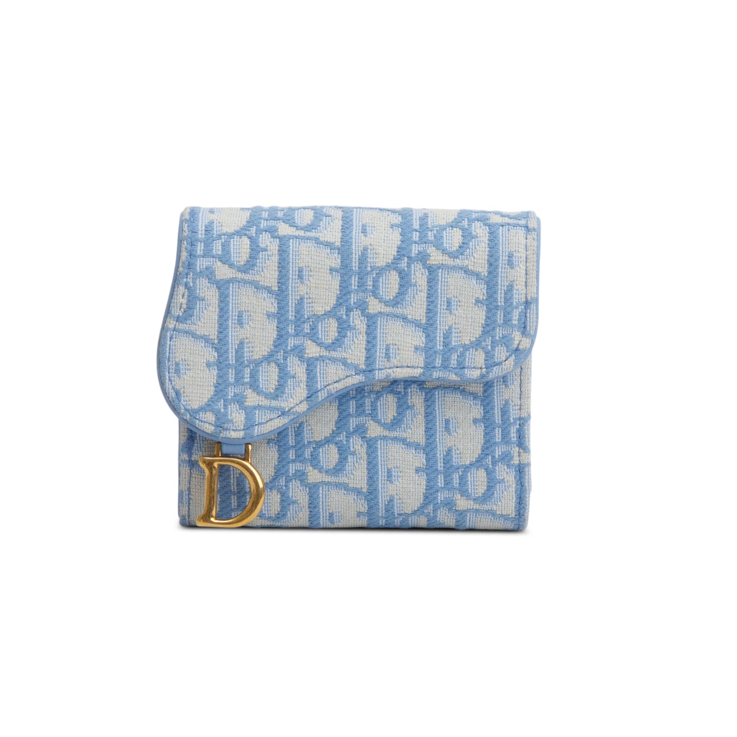 Light Blue Oblique Jaquard Saddle Lotus Wallet w/ Box