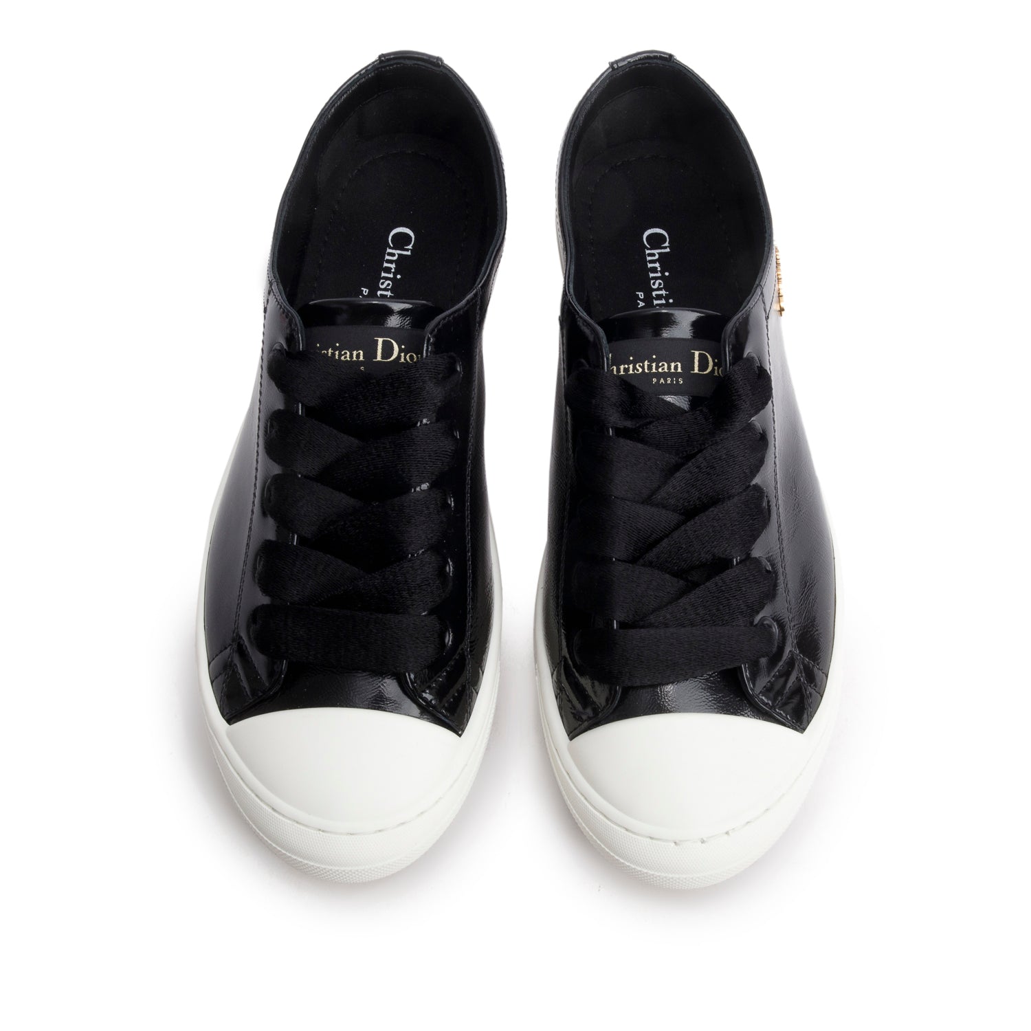 Black Patent Leather Dior Lucky Sneakers, Size 36 w/ Box