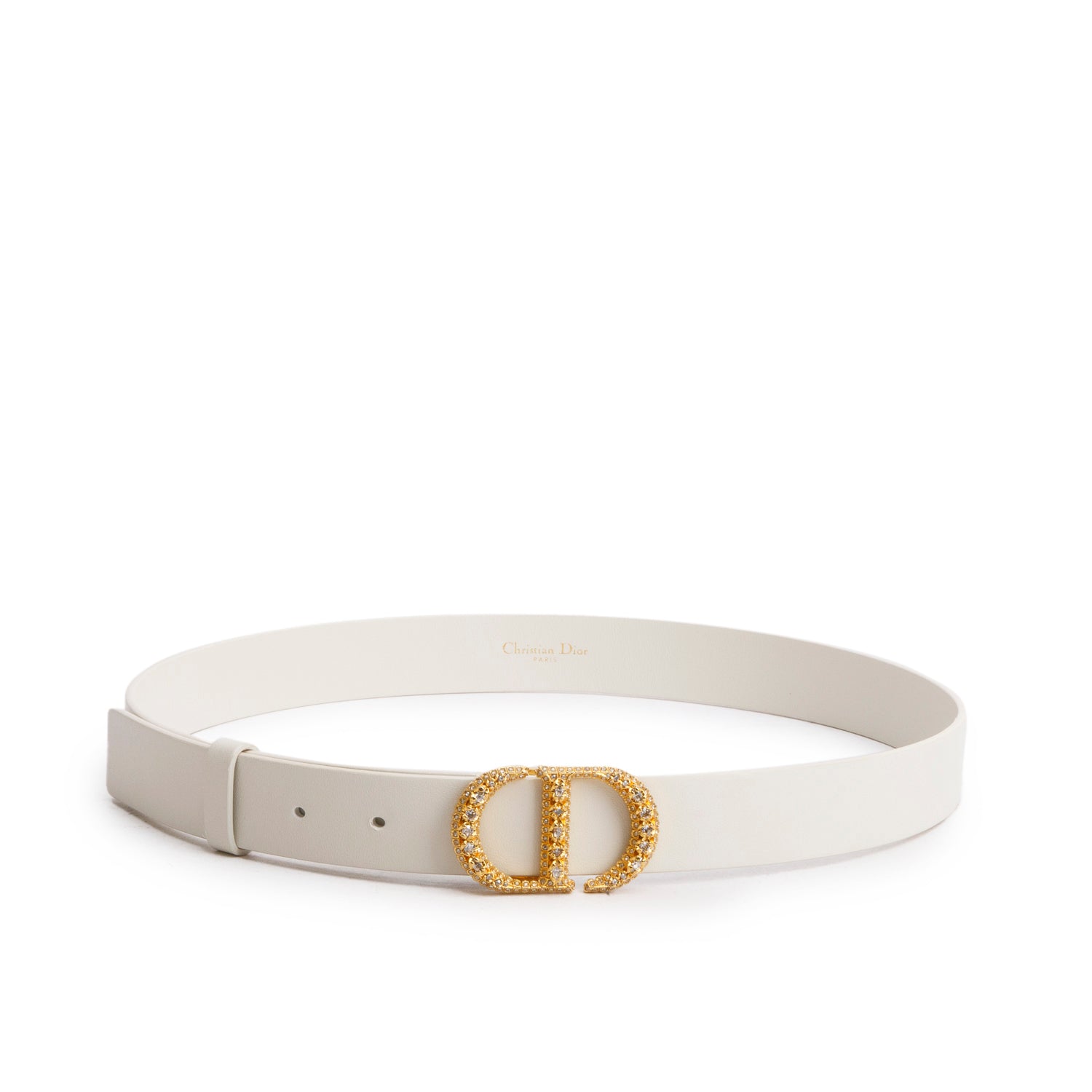 2022 White Leather Crystal 30 Montaigne Belt 85 w/ Box