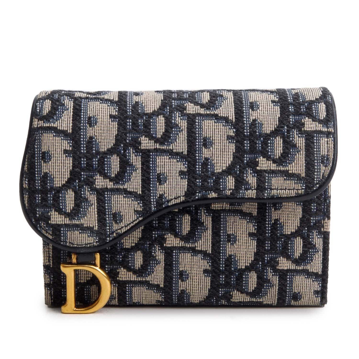 Navy Oblique Jaquard Saddle Lotus Wallet w/ Box